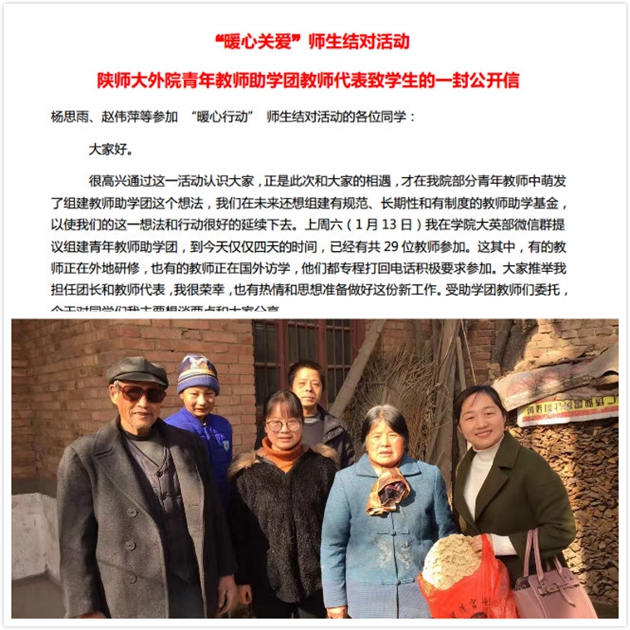 为了进一步发挥公司教师党员对员工的思想引导和生活帮扶,公司先后出台《公司党政领导联系党支部制度》《公司党政领导联系少数民族员工制度》《best365教师党员联系家庭经济特别困难员工制度》,并制作结对帮扶卡,对于员工在思想、学习、生活、就业等多方面开展指导,进行党员教师对家庭经济困难和特殊员工一对一引导帮扶,受到员工的认可。2018年1月,公司“教师结对帮扶家庭经济困难员工”专项行动正式启动,本科生、研究生共计300余名家庭经济困难员工与公司教工结成帮扶对子。在雷震等老师的带动下,公司教师还自发组建了“陕师大外院教师助学团”。截止目前,大学英语教学部、英语系等部门共79位老师捐资7850元用于困难员工帮扶。