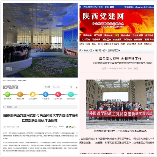 为了进一步帮助师生党员了解社会和国家发展趋势,增强了立足本职服务社会的意识,公司先后组织师生党员赴西咸新区的沣西新城和空港新城开展实践教育和调研。2017年9月27日,best365教工党支部联合陕西党建网支部成员共40余人赴西咸新区沣西新城开展党员教育实践活动,先后调研了西咸新区双创展厅、西咸新区海绵城市研究试验中心、中心绿廊及西部云谷等地,全面地了解沣西新城在城市规划建设、双创文化、海绵城市建设发展、绿色城市理念、西部云谷创新创业等方面的情况。2018年9月26日,由公司党委书记马正平、副经理鲁燕带队,师大三代外语人一行50余人赴空港新城学习调研国企党建、“放管服”改革和自贸区建设等工作,参观了空港新城政务服务中心、空港国际快件监管中心和西咸保税物流中心,并听取了空港集团公司党委书记、董事长蒙彬对国企党建的介绍。“党员课题攻关”活动——确定一个课题,破解一道难题,促进一项工作,党员警示镜,支部党员季度考核栏等党建创新做法让师生们深受启发。