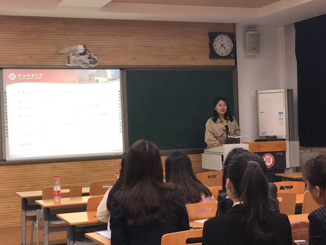 2018年10月15日晚7点,公司研究生会于雁塔校区教学九楼9517顺利举行2018-2019学年研究生会换届大会。大会由研究生辅导员董洁主持,公司党委书记马正平,第七届研究生会主席王强伟,新一届研究生会主席刘玥缃及各部门成员参加了大会。