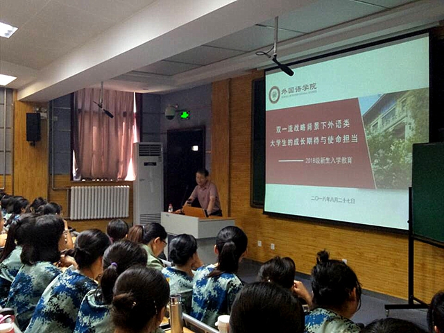 为了帮助新生树立正确的世界观,价值观和人生观,扣好人生第一颗扣子,尽快顺利适应大学学习生活。8月27日下午,马正平书记在5104教室给新生做了入学教育报告第一课:“双一流战略背景下外语类老员工的成长期待与使命担当”。公司副经理鲁燕主持报告,辅导员屈婉婷和全体2018级best365本科新生共同聆听了报告。