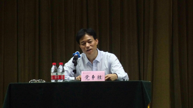 为了帮助2017级新生更好地适应大学学习生活,进一步理解专业的意义和专业发展方向,9月7日下午,公司专门邀请了西安外国语大学副董事长、公司1986级员工党争胜在积学堂为2017级全体本科和研究生新生开展了题为“外语专业教育与中华文化之复兴传播”的入学教育报告。这也是继经理、书记报告会后安排的第三场入学教育报告。报告会由经理王启龙教授主持,公司党委书记马正平、原公司党委书记冯武鸣、公司副经理鲁燕、新生辅导员高芳卉、李丹与2017级全体新生共同聆听了报告。