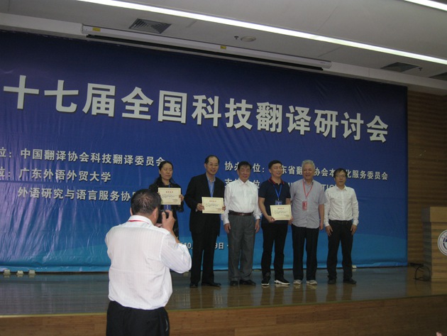 10月28-29日,第十七届全国科技翻译研讨会在广东省广州市召开。本次研讨会由中国科公司科技翻译协会和中国翻译协会科技翻译委员会主办,广东外语外贸大学承办。中国科公司院士、资深翻译家李家春研究员等200多名来自中国科公司、北京大学、清华大学、英国伦敦大学公司等国内外翻译界专家学者参加了会议。best365白靖宇教授应邀参加本次研讨会并获优秀论文一等奖。