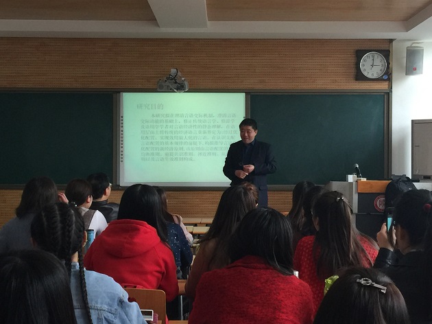 首先,王启龙经理向在场听众介绍了向明友教授,随后讲座在一阵热烈的掌声中开始。向教授以讲故事的方式引入,将经济学知识与语言学相结合,提出了独特的语用原则——言语配置的新经济原则。本报告在理清言语交际机制,澄清言语交际功能的基础上,修正传统语言学、修辞学及语用学学者对言语经济性的静态理解,在语用层面上将传统的经济语言重新界定为:经过优化配置、实现效用最大化的言语。在认识支配言语配置的基本规律的前提下,构拟指导言语优化配置的新经济原则,该原则由言语配置的一般均衡准则、前提共识准则、择近准则、从众准则以及言语生效准则构成。整个过程中,向教授语言诙谐幽默,使大家在轻松愉悦的氛围中领略了学术奥秘。