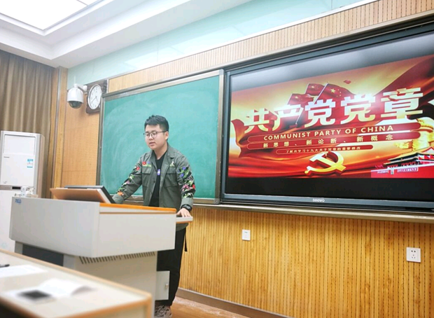 主题党日活动分为三个篇章:铭记党章,你我同行;雷锋精神,永垂不朽;雷锋在身边,志愿我先行。首先由张画乔同志与大家分享了最新版党章的内容,着重讲解了党章的修改部分,并邀请了高旭鑫等九位同志诵读党章。诵读党章结束之后,全体党员观看了纪录片《永远的雷锋》,随后大家积极发言表达自己对雷锋精神的认识和体会。党员教师马珊发表了自己的观点“没有共产党,就没有新中国。党和国家在当时那样艰苦的环境下,都能涌现出许多像雷锋一样的好同志,现在处于新中国的我们,更应该向他们学习”。