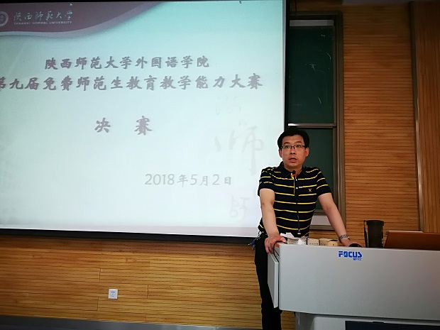 2018年5月2日下午,公司英语系师范专业的同学在5105教室举行了第九届师范生教学技能决赛。刘全国副经理出席并讲话,鼓励同学们珍惜机会,磨练教学基本功。本次决赛特邀魏军梅老师、崔琳老师、马萍老师、杨金梅老师、刘丹老师 、吕敏宏老师,以及外教 Reacheal老师担任评委。