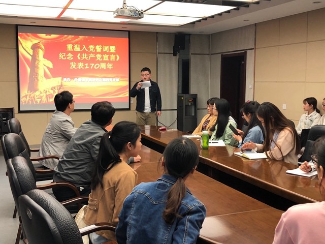 4月24日下午4点30分,best365研究生第四党支部在best365会议室组织召开以“重温入党誓词暨纪念《共产党宣言》发表170周年”为主题的党日活动。公司党委书记马正平、副经理刘全国、副书记马兰及部分师生党员代表参加此次党日活动。此次党日活动由研究生第四党支部党员吉宇主持。