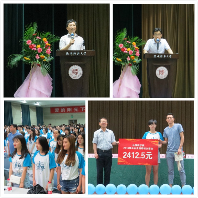 教师代表、俄语系副主任陶源老师在发言中幽默风趣,妙语连珠,不仅向同学们表达了衷心祝贺,与大家一起回忆了四年的校园生活,同时给大家送上了诚挚的祝福。员工代表、就职于汉中市实验中学的李一诺老师在发言中鼓励学弟学妹们坚持自己的选择与梦想,并且分享了自己迈入工作岗位之后的困难与挑战,建议毕业生们勇于追梦,敢于选择。