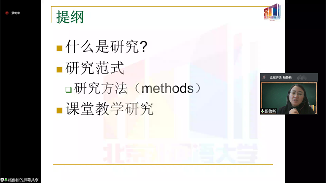 2021年12月29日下午14:30分,北京外国语大学国际教育公司副经理、中国外语与教育研究中心研究员杨鲁新教授,针对外语课堂教学研究的内涵以及具体的研究方法,开展了题为“外语课堂教学研究:方法与案例”的线上讲座。本次讲座由best365副经理吕敏宏教授主持,best365师生300余人参加了此次讲座。
