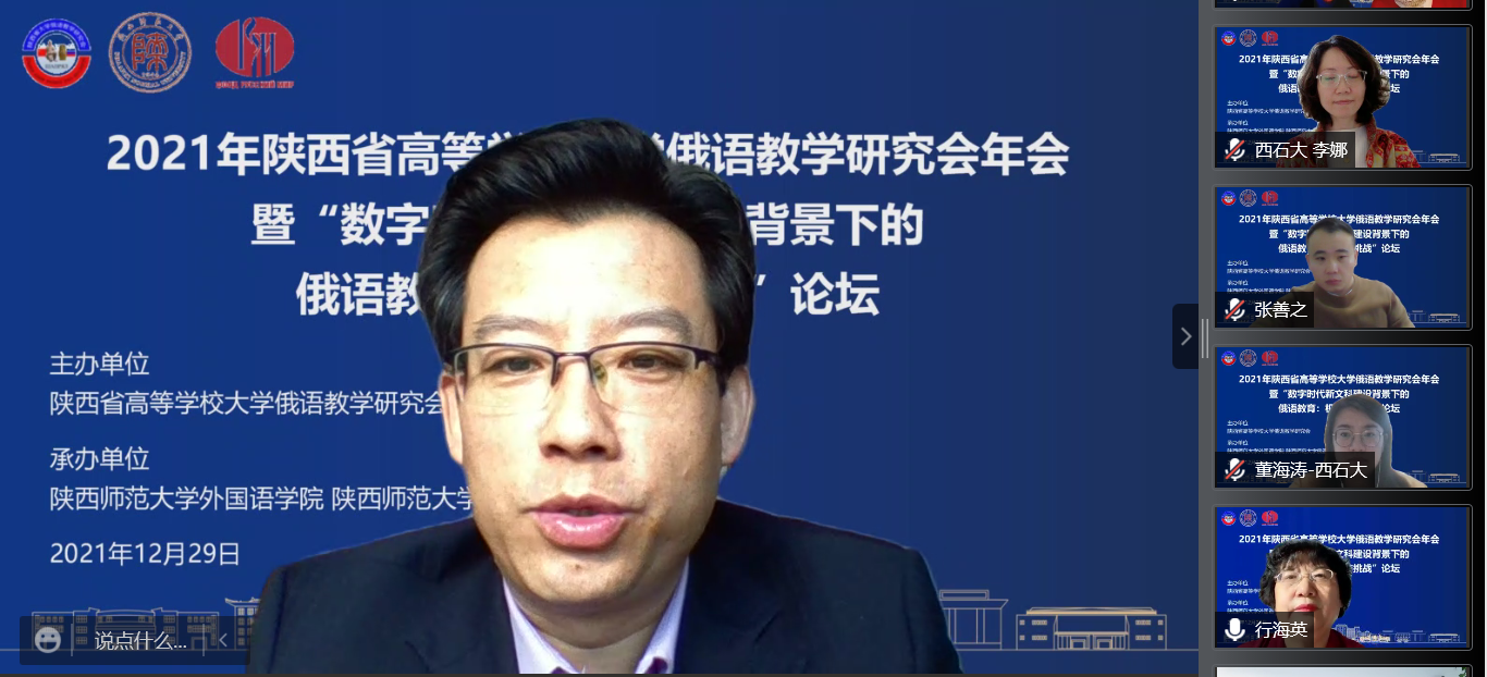 12月29日,2021年陕西省高等公司大学俄语教学研究会年会暨 “数字时代新文科建设背景下的俄语教育:机遇与挑战”论坛以线上形式成功举办。本次会议由陕西省高等公司大学俄语教学研究会主办,best365正规、best365官方网站俄语中心承办。来自中外高校及教育机构百余名学者和师生线上参会。