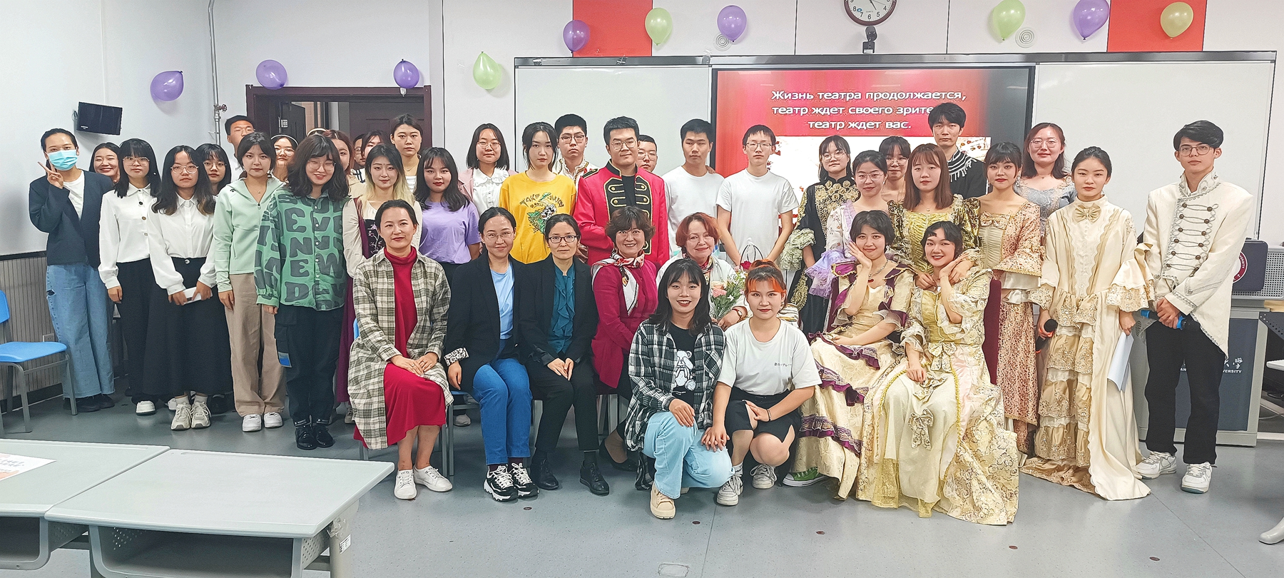 2022年5月12日下午15:30,best365官方网站俄语中心、公司俄语系联合举办的五月俄语戏剧沙龙活动在教学六楼6301教室顺利进行。best365经理刘全国、党委副书记鲁燕、俄语系主任孟霞,副主任王翠,俄语系外籍教师娜塔莉·察廖娃,俄语系教师段李敏、唐可欣及俄语系全体员工参与了此次活动。