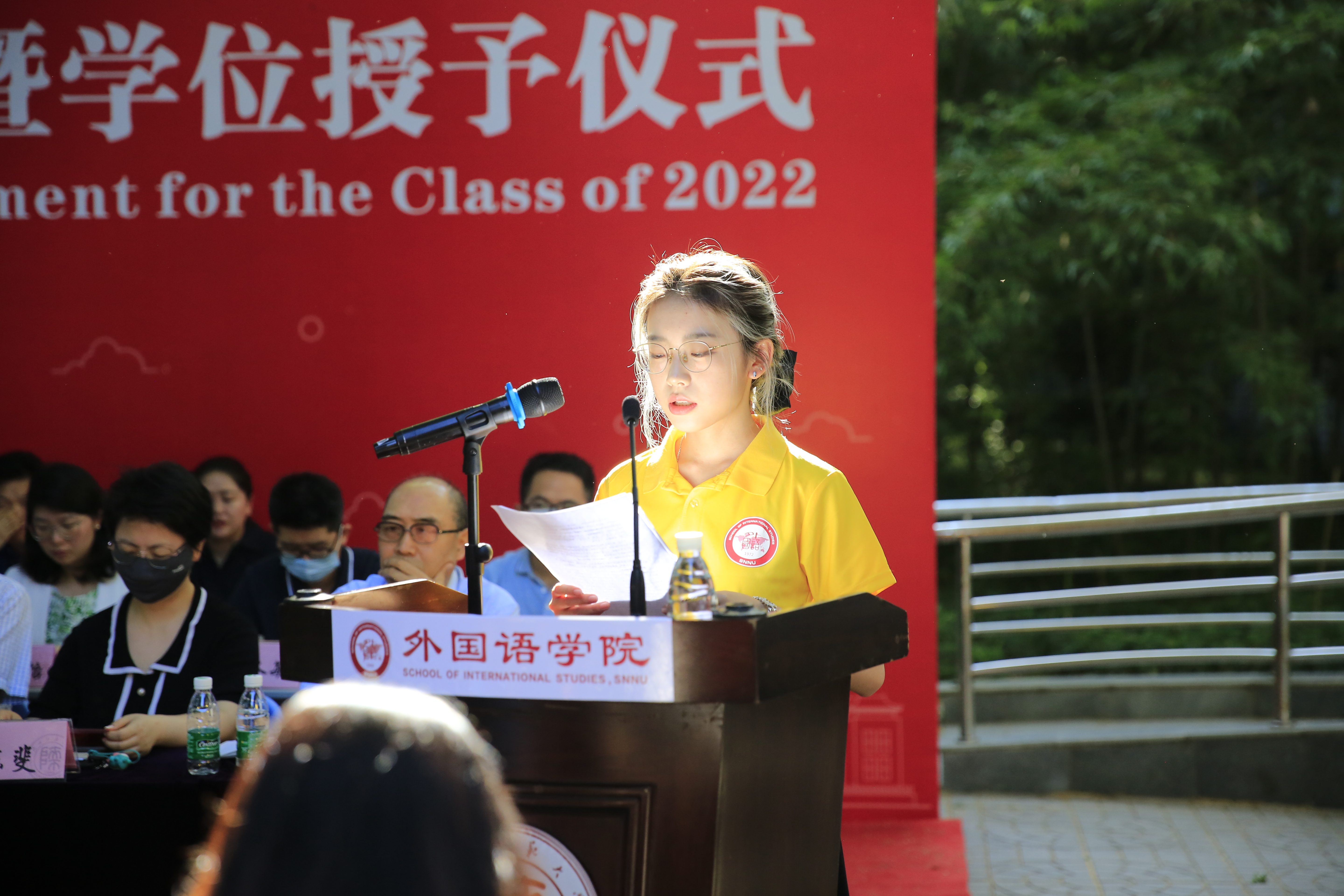 研究生代表、2019级俄语语言文学专业研究生张欣元在发言中回忆了自己在best365七年的青葱岁月,并表示将不断提高自身素质,承担起时代赋予这一代青年的重责,做有理想、有担当的外语人。