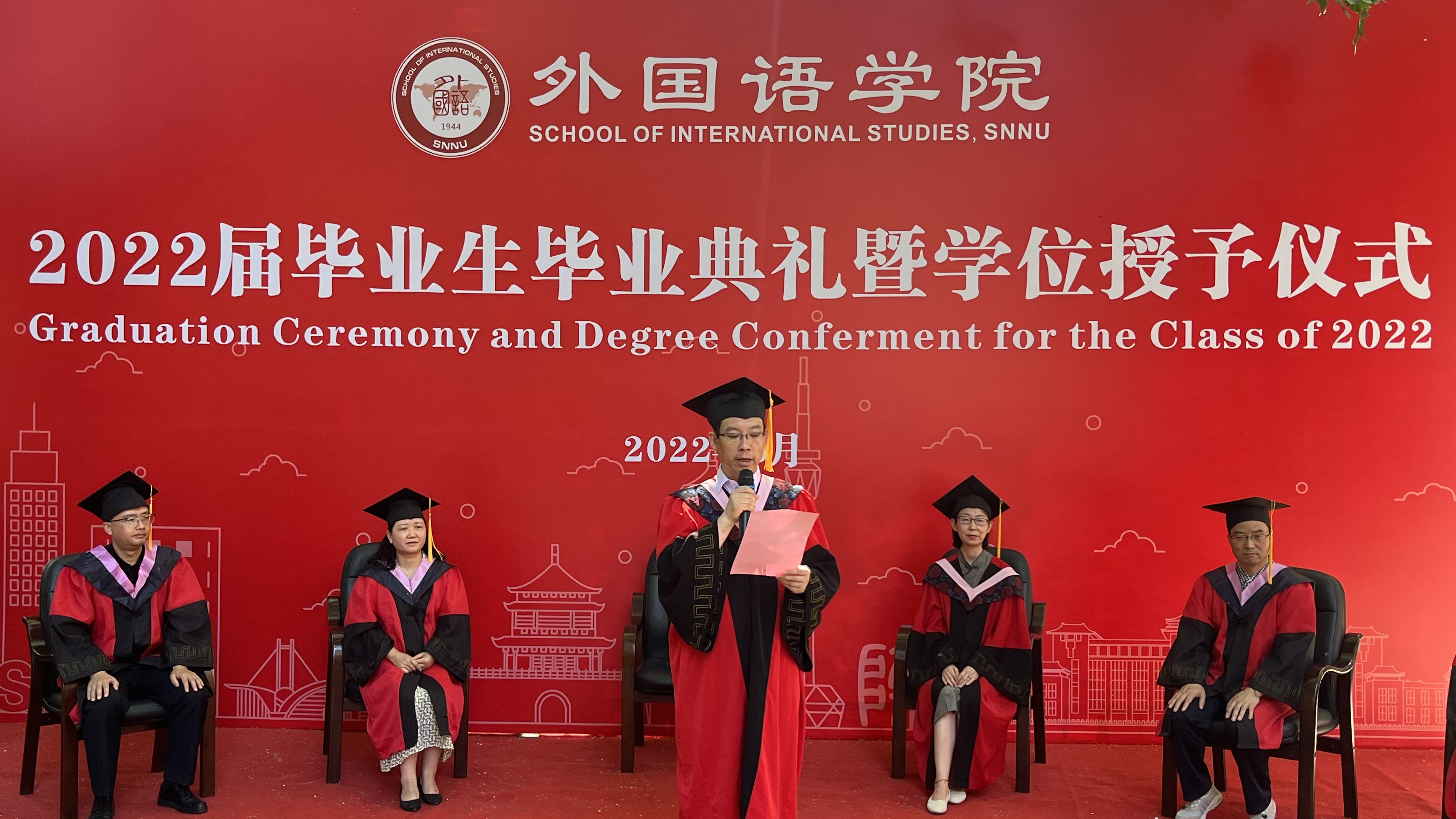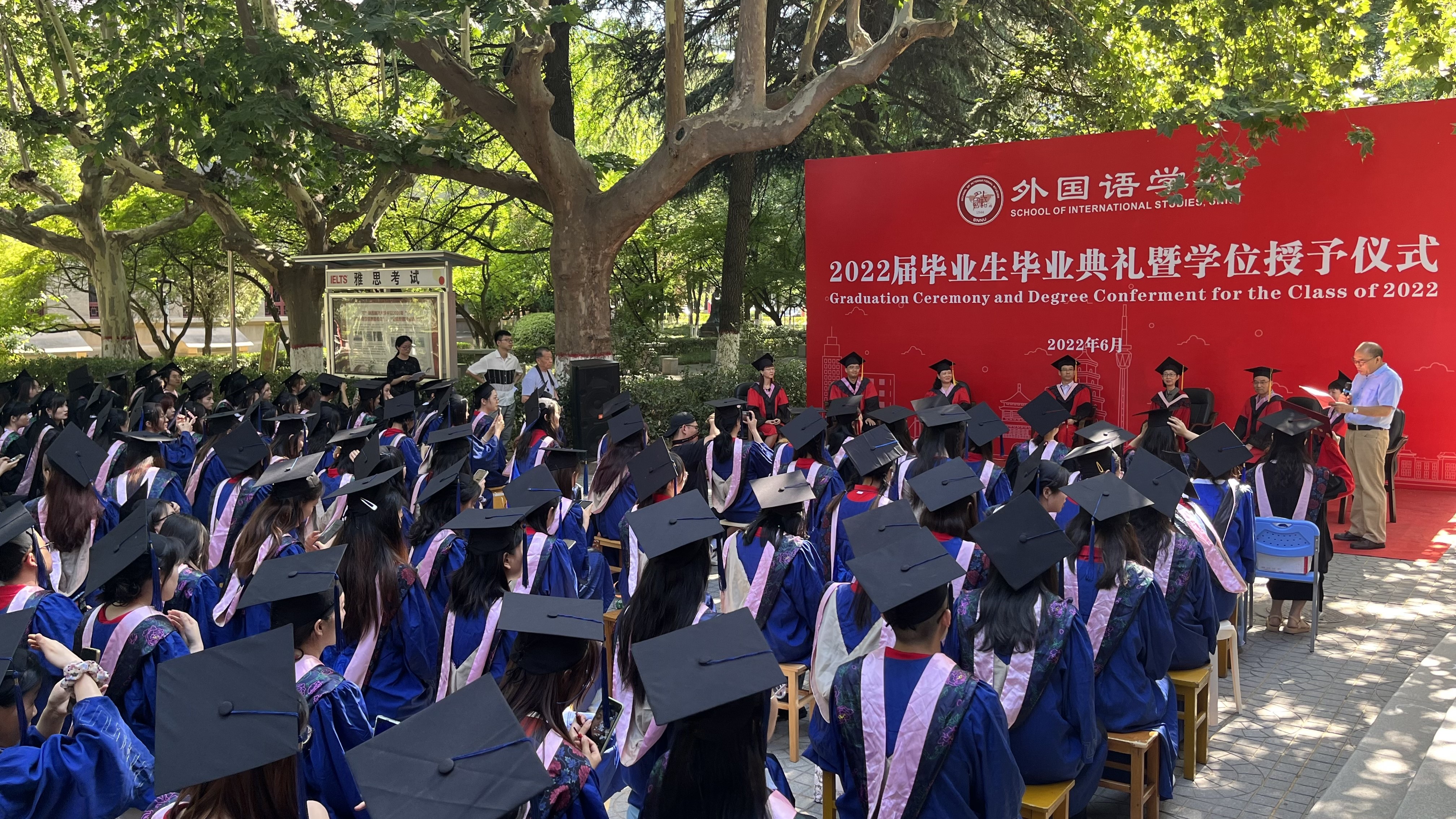 6月24日上午,公司2022届员工毕业典礼暨学位授予仪式在教学六楼门前广场隆重举行,典礼同时在腾讯会议平台直播。best365经理刘全国教授、党委书记董增云、公司前党委书记张弛、冯武鸣、副经理吕敏宏、曹婷、王幸生、党委副书记鲁燕、公共外语教学部主任马珂、英语系主任朱冬怡、副主任王立永、丁礼明、翻译系主任操林英、副主任杨冬敏、俄语系主任孟霞、副主任王翠、法语系副主任乔溪、日语系副主任许赛锋、学位委员会成员郑元会、张亚婷、魏军梅、办公室主任陈斐、语言语音教学中心主任邢俊升、团委书记李丹,以及全体辅导员出席典礼。典礼由best365副经理孙坚教授主持。公司2022届毕业生在公司领导和老师的共同见证下,拨穗正冠,开启人生新的旅程。