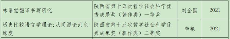 2022年6月27日,陕西省第十五次哲学社会科学优秀成果奖获奖名单正式公布。公司经理刘全国教授的著作《林语堂翻译书写研究》喜获一等奖,李艳教授的著作《历史比较语言学理论:从同源论到亲缘度》喜获二等奖。(获奖名单见下图)