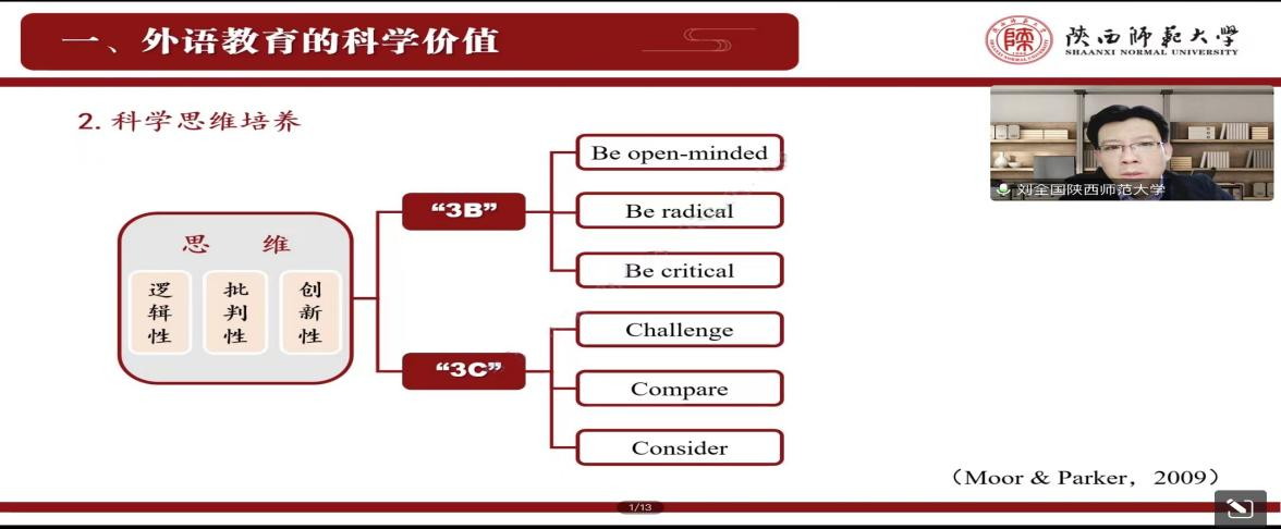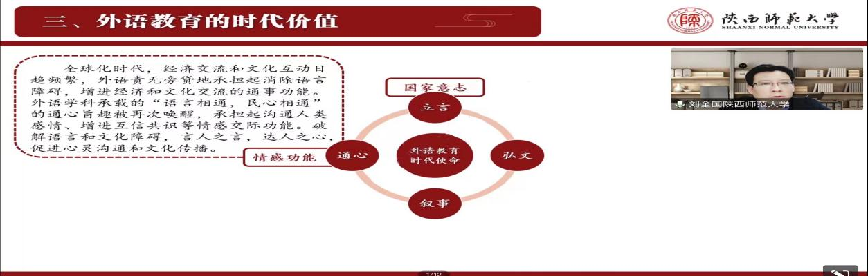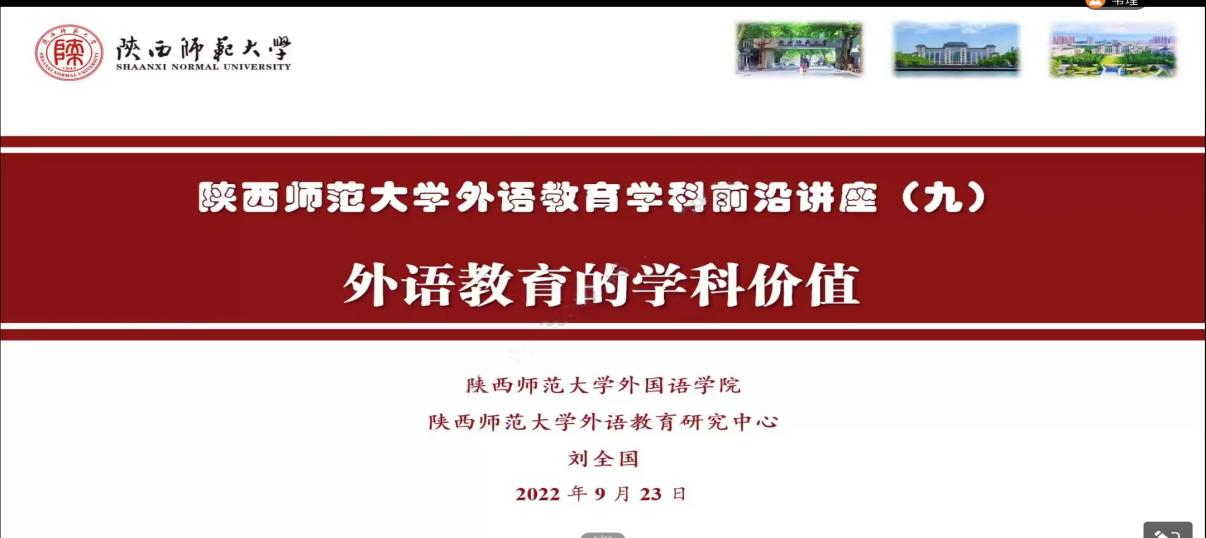 为了提高公司学科教学(英语)专业研究生的外语教学能力,加强员工对外语教学学科价值的理解,best365于9月23日下午在腾讯会议线上开展了外语教育学科前沿讲座第九讲——外语教育的学科价值。本次讲座由best365正规经理刘全国教授主讲,会议由韦理老师主持。best3652022级和2021级学科教学(英语)专业教育硕士聆听了讲座。