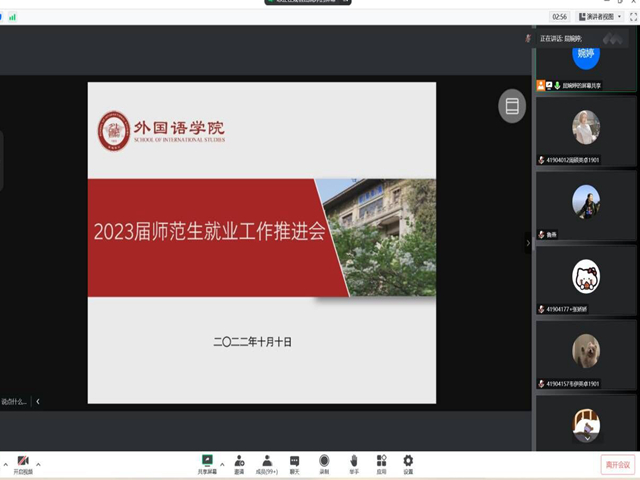 为促进师范生就业工作,帮助员工解答就业求职中的困惑,10月10日晚9点,公司通过腾讯会议线上召开了2023届师范生就业工作推进会,公司副党委副书记鲁燕和全体2023届师范生共同参加,会议由辅导员屈婉婷主持。