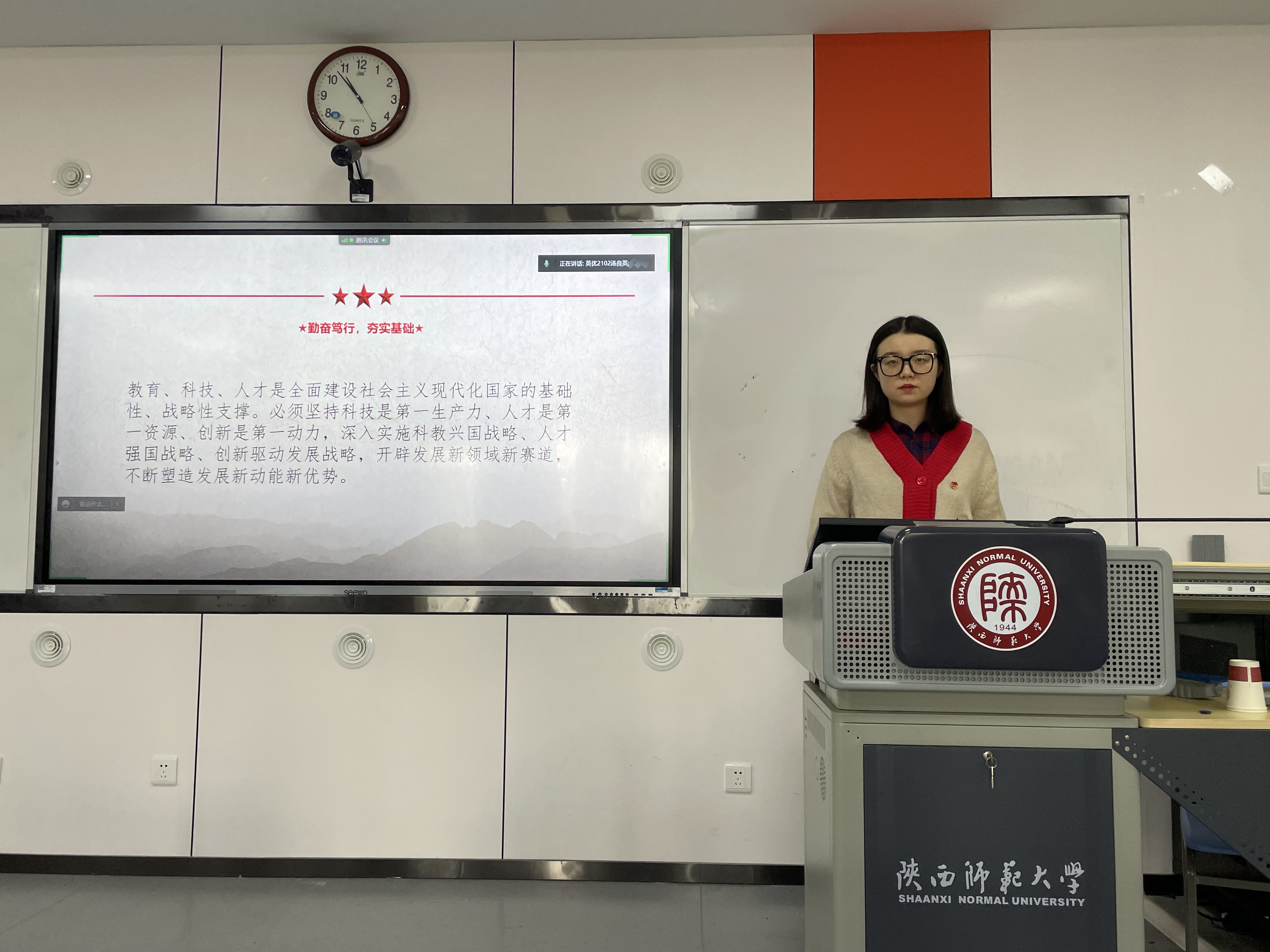 接着王瑟艺同学分享了自己学习党的二十大精神的体会,鼓励同学们坚定理想信念,守正创新,勤奋好学,担起团支书的桥梁作用,积极开展各类紧密联系政治热点和专业特色的团日活动。同时,她也重点提到公司和公司在创新创业赛事培训做出的努力,鼓励各位同学积极参与到这类赛事中,努力把自己培养成全面发展的创新性人才。