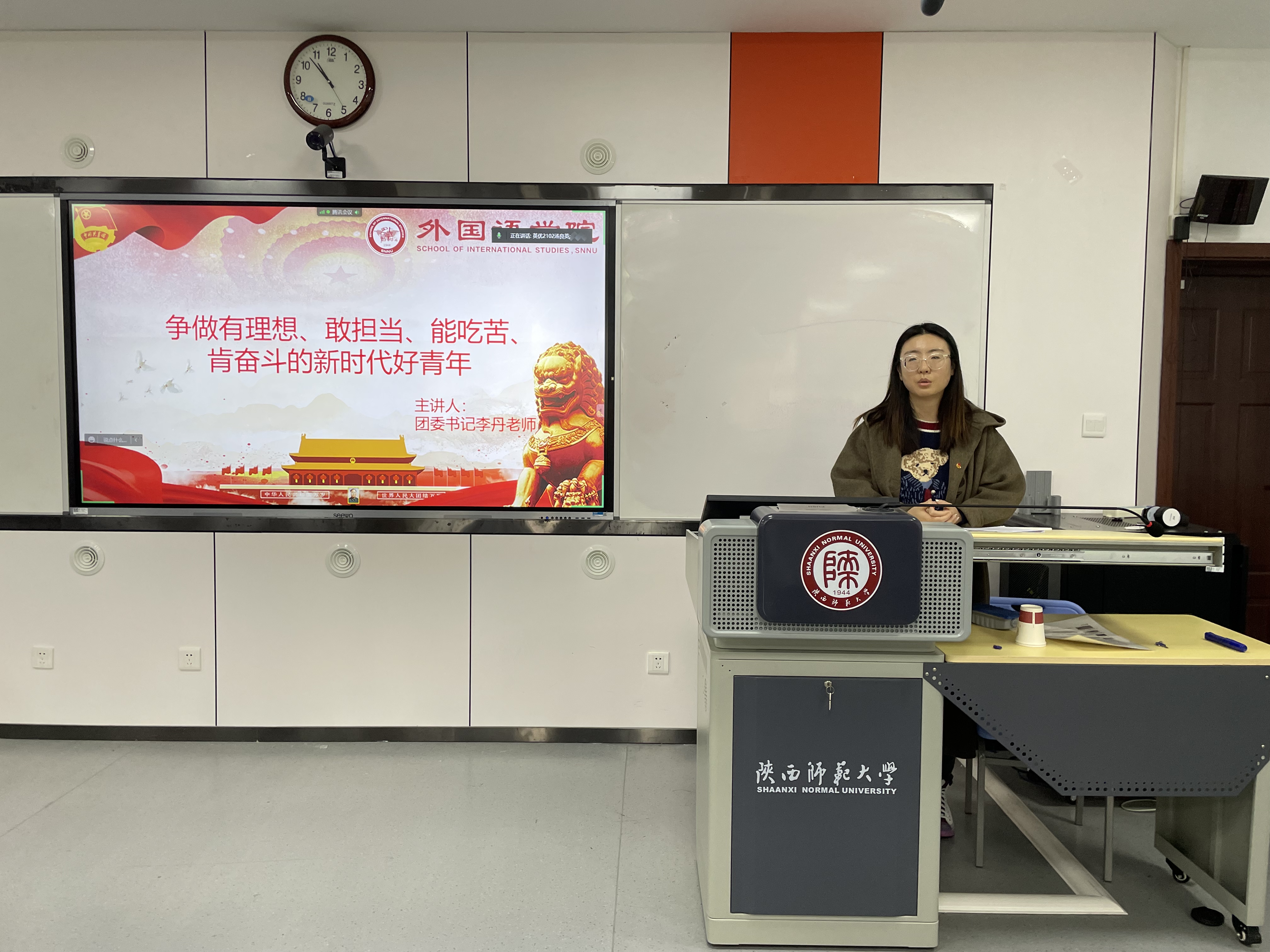 会议第一项由best365团委书记李丹传达校团委相关文件精神并领学党的二十大精神。她激励同学们作为新时代的接班人,要踔厉奋发;作为外语人,要锤炼自己的专业能力,讲好中国故事;作为师范人,要发扬“西部红烛精神”,教育报国。最后,李丹对本月团日活动开展提出具体要求,鼓励团支书在团日活动设计上不断创新,采用同学们喜闻乐见、通俗易懂的形式,围绕思想引领、志愿服务、创新创业等主题,让团日活动更加有声有色,进一步把全院团员青年的思想统一到党的二十大精神上来,把力量凝聚到党的二十大确定的各项任务上来,为公司、公司共青团工作贡献力量。