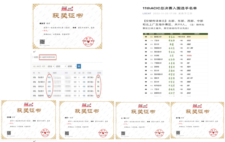 第十一届全国口译大赛总决赛于近期落下了帷幕,公司在此次大赛中获得了喜人成绩。全国口译大赛以中国外文局为指导单位,中国翻译协会主办,是国内专业权威度极高的口译比赛。此次大赛自2022年3月启动,受疫情影响,初赛,陕西省复赛,大区赛,全国总决赛分别于5月28-29日,6月25-26日,9月24-25日,12月17-18日在线上举行。