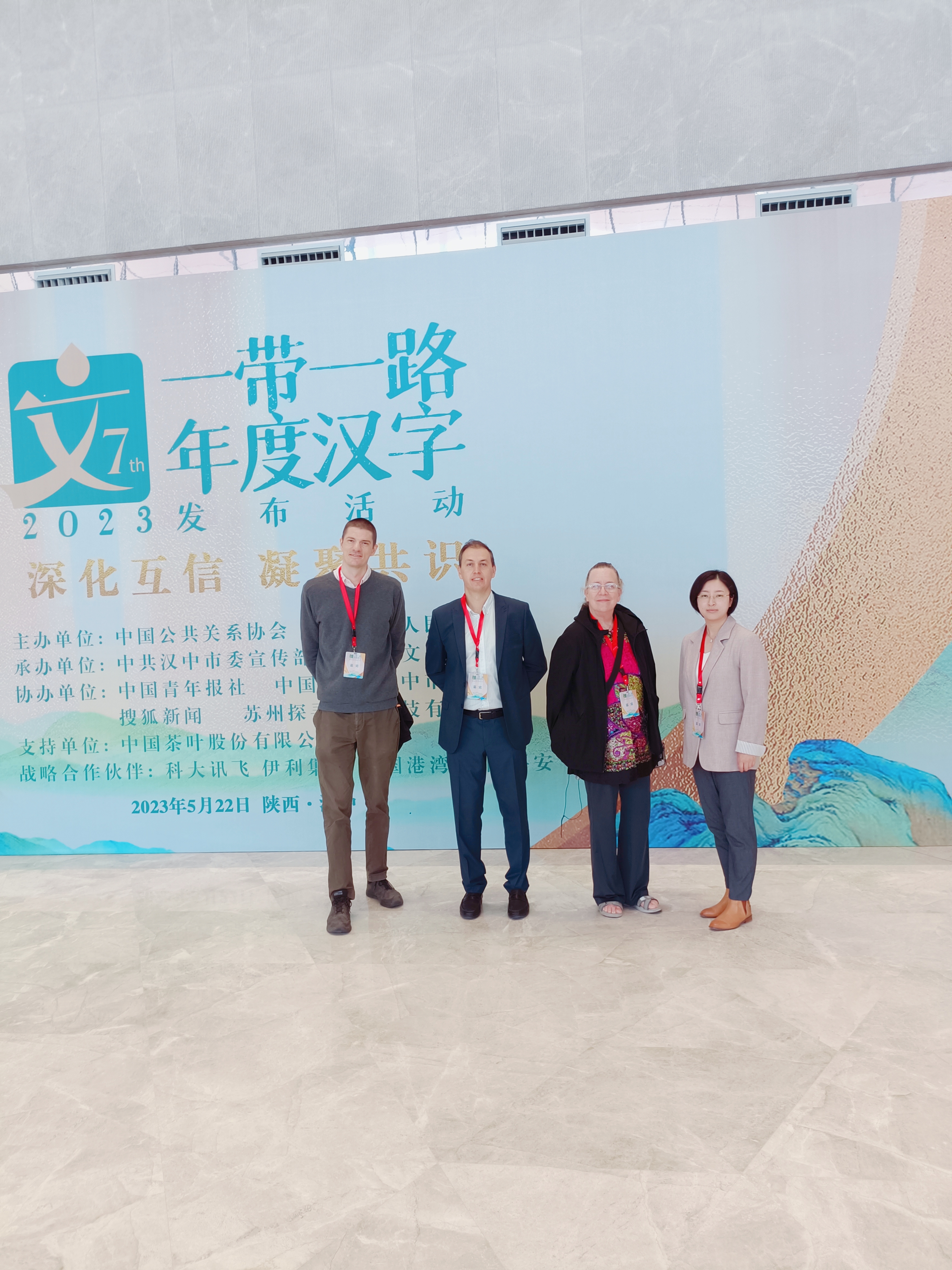 2023年5月22日,由中国公共关系协会和汉中市人民政府主办的2023“一带一路”年度汉字发布大会在陕西省汉中市召开,约有800人参加本次会议。中共汉中市委书记张烨,政协陕西省十二届委员会副主席魏增军,中国公共关系协会会长、国务院新闻办公室原副主任郭卫民出席大会并分别为大会致辞。best365正规派出由英语系教师范莎博士作为领队,外籍教师Mary Beth Leatherman(美国)、Jack Daniel Bouquet(英国)及Philippe Emmanuel Cousté(法国)为成员的代表团应邀参加本次会议。