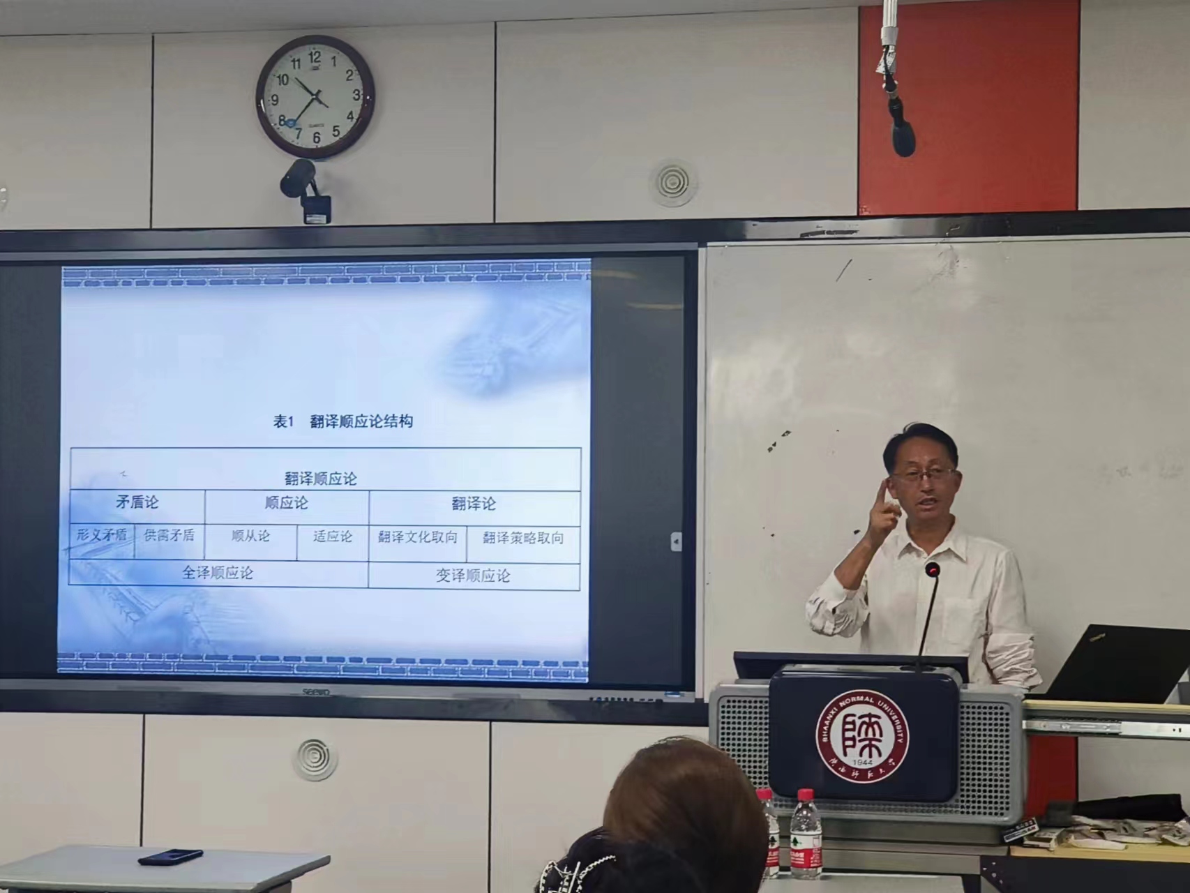 黄忠廉教授从“顺应及其溯因”、“翻译矛盾与顺应的结构”、“破解供需矛盾的变译是大顺应”、“变译顺应论旨在解决供需大矛盾”、“变译以原作顺应译语三特需求”等五个方面出发,提出了许多对学术研究的深刻见解,并鼓励公司师生们用心观察生活,善于发现、善于感悟,寻找生活、社会乃至国家层面具有研究价值的课题。