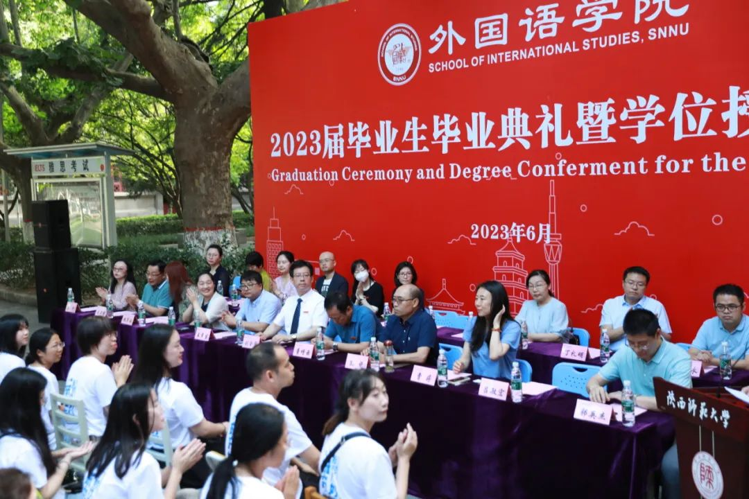 best365经理刘全国教授进行致辞。他以诗经为序、唐诗为辞,回顾西安的历史传统和师大的内涵底蕴,回忆同学们求学路上的点点滴滴。表示经过古都浓厚的文化熏陶和公司卓越的人才培养,同学们都成长成为有使命担当的新时代外语人。他向即将踏上人生新旅程的2023届毕业生表示最热烈的祝贺,向辛勤培养员工的全院教职工表示衷心的感谢。