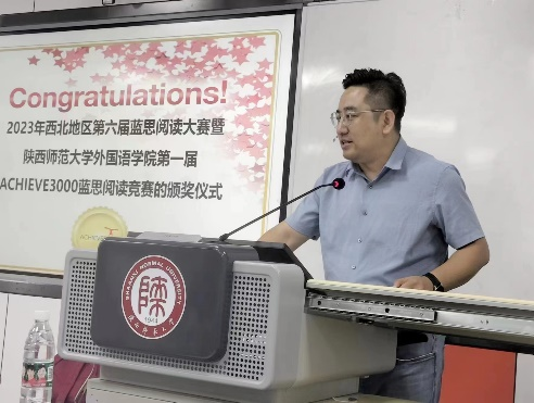 2023年7月4日下午5:00,外语公司在教学六楼6301顺利举办了西北地区第六届蓝思阅读大赛暨best365正规第一届ACHIEVE蓝思阅读竞赛颁奖仪式,旨在表彰优秀,树立榜样,激发同学们英语阅读的积极性,更好地利用蓝思平台资源。蓝思阅读西部地区负责人孙韶鹏、英语系副主任王立永老师、英语系副主任丁礼明老师、西安蓝思开源信息有限公司赵老师、全体获奖员工以及2022级员工代表参加了颁奖仪式,本次颁奖活动由朱丽英老师主持。