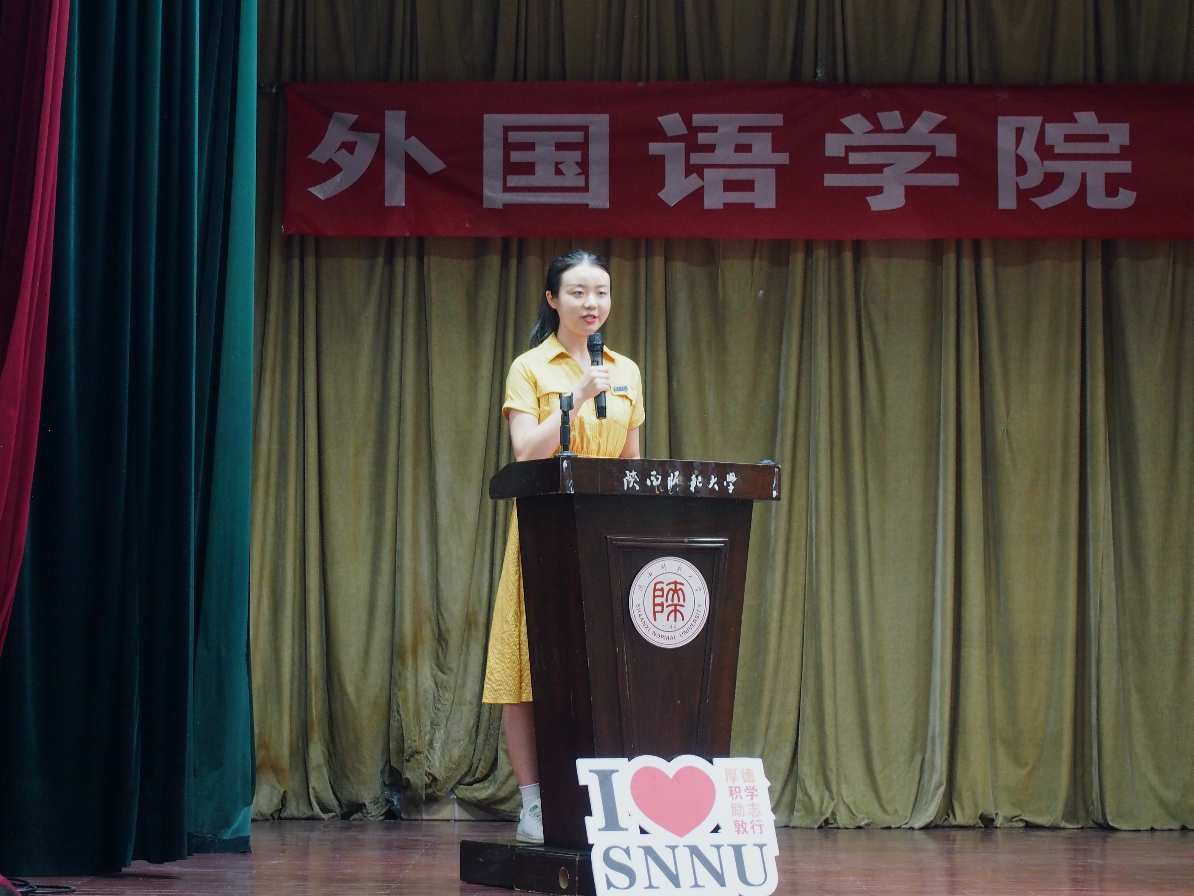 在校生代表2022级学科教学(英语)研究生王瑟艺同学分享了自己在外院的成长经历,并对各位老师的辛勤付出表示感谢。她鼓励师范生们掌握最新教学理论方法,成长为“四有”好老师。非师范专业的员工要未雨绸缪,积极和老师沟通,树立远大目标,注重综合能力培养。她鼓励大家培养国际化的视野和广阔的胸怀,用青春谱写最美的篇章。