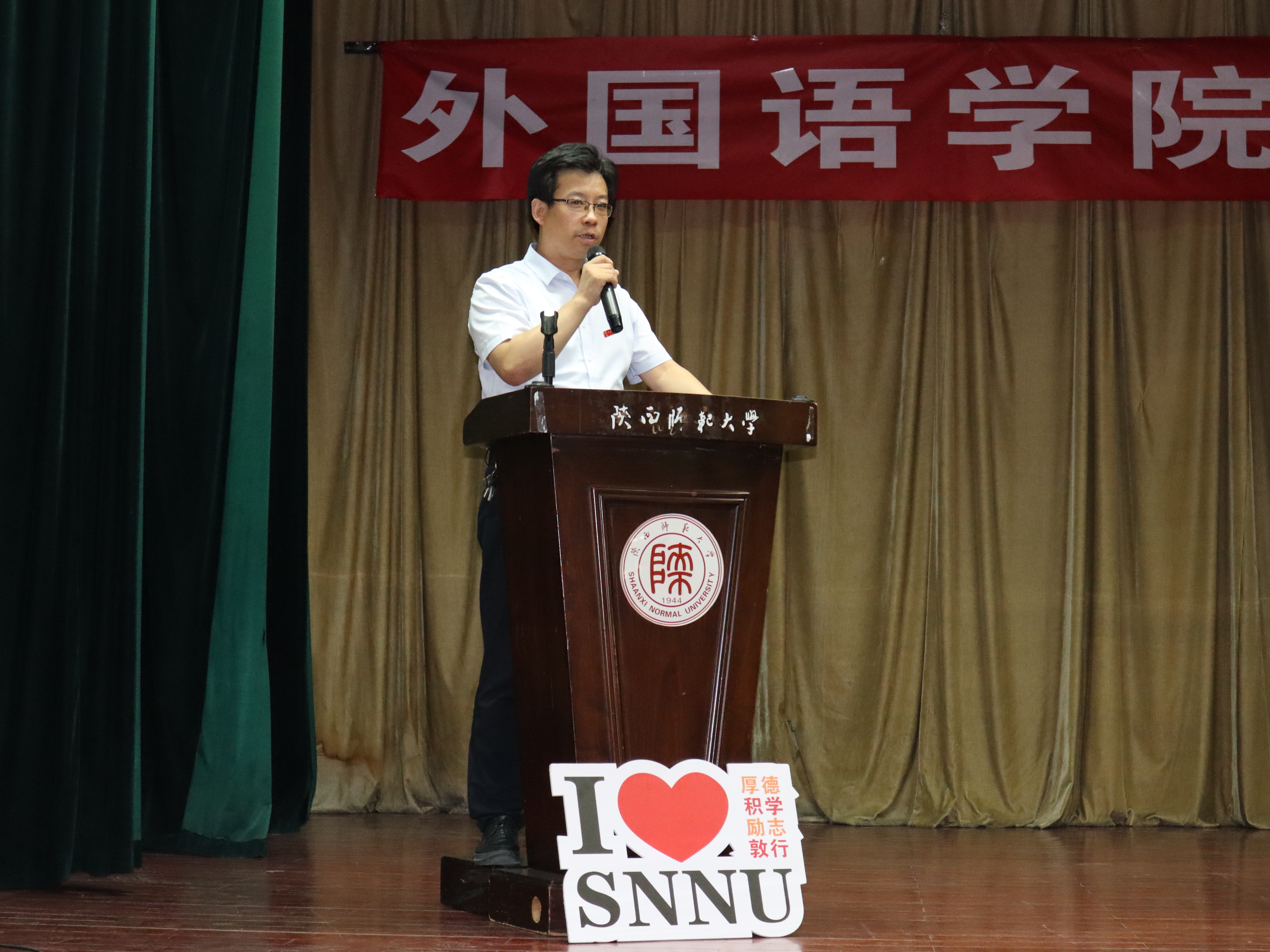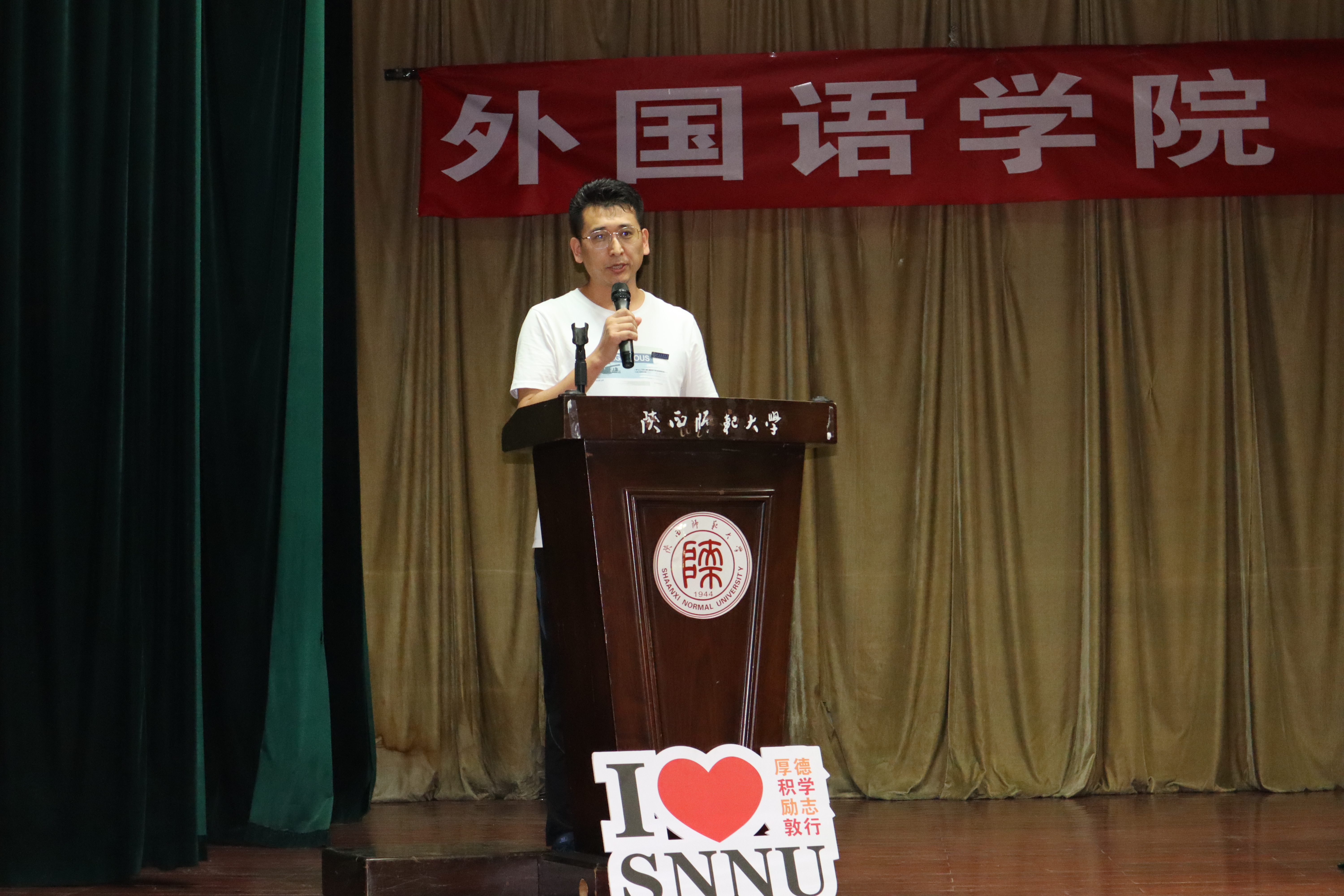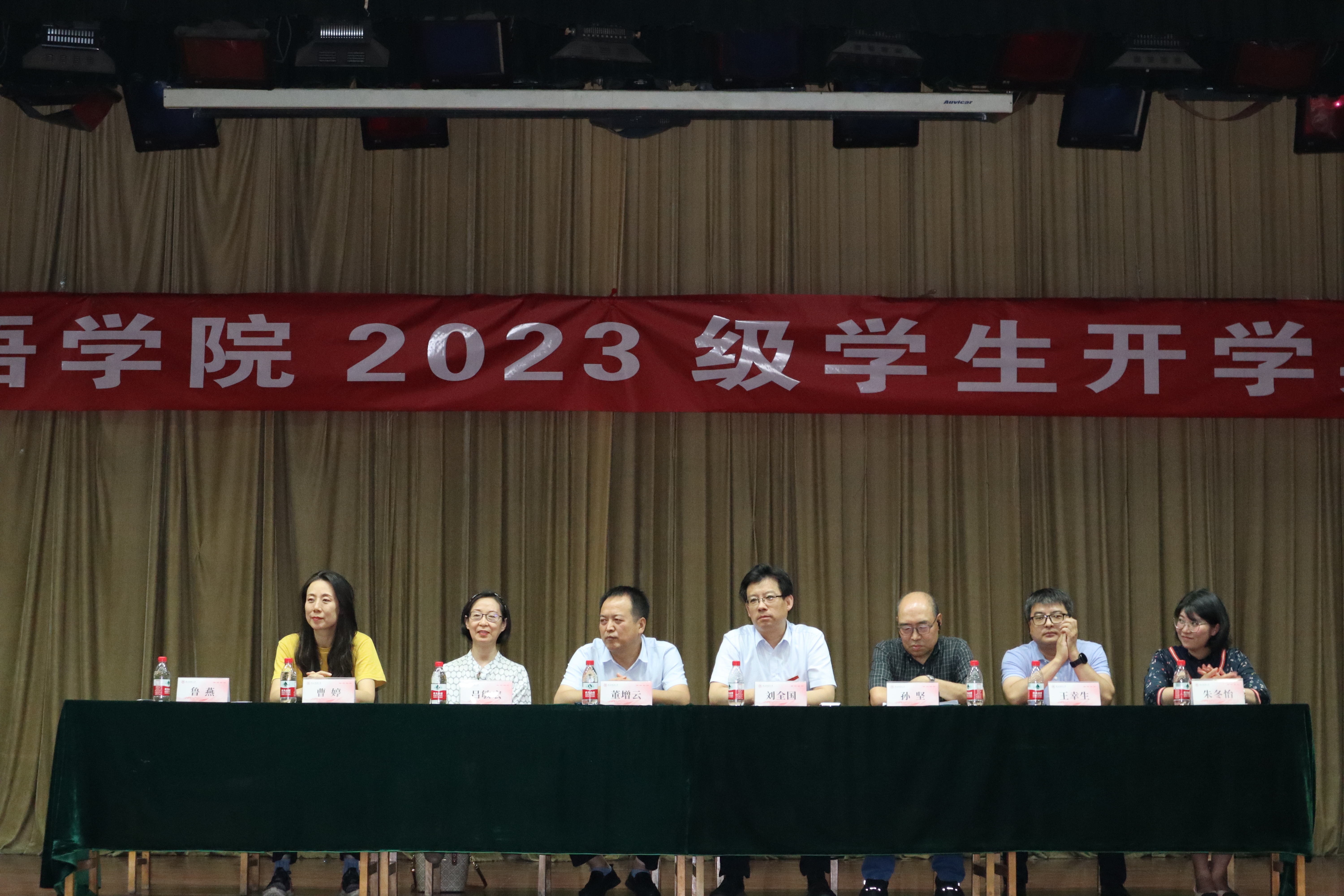 最后,经理刘全国教授发言。他对新生们表示表示欢迎,并以家长的身份为大家上好开学第一课。他从“仰望星空,志存高远”、“世界很大,家国为体”,“强心健体,拥抱生活”和“醉心学习,快乐成长”四个方面表达了自己的期望,鼓励大家进行自主、自助、自发的学习,内外兼修,开阔视野,和国家与时代同频共振。要涵养情怀,传播好中国声音,讲好中国故事,做博雅人、多语人、国际人、教育人、研究人的五位一体外语全人。