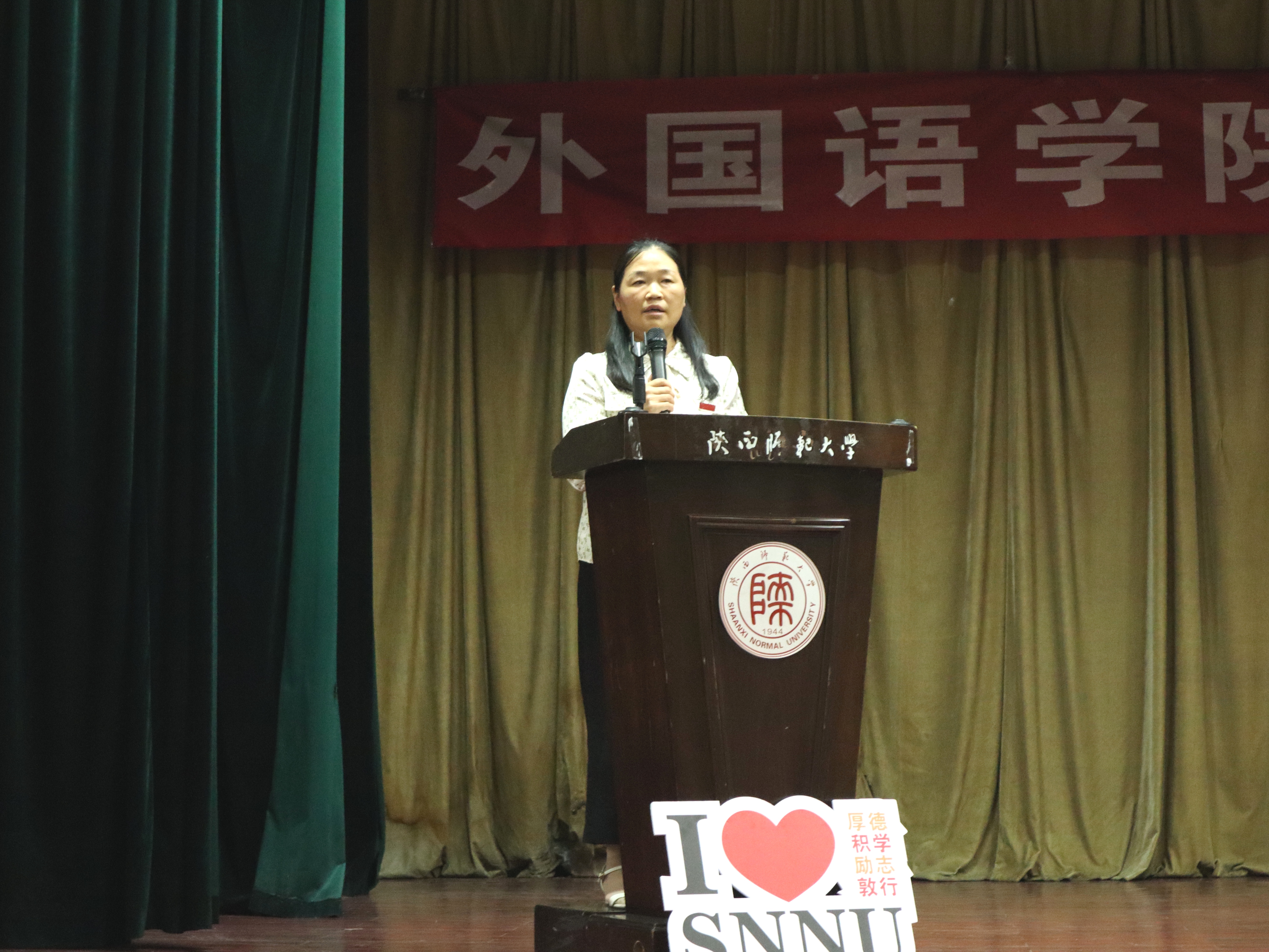 教师代表翻译系尚亚宁教授发言。她鼓励大家正确看待新生活、新起点、新征程,平稳度过适应期;要谨记校风校训,培养独立的人格和自由的精神,百折不挠,心系天下;要平衡好学习和生活的关系,心胸开阔,掌握与人相处的智慧。最后,她勉励同学们做向世界传播中国文化的践行者和播火者,铭记为党育人、为国育才的光荣使命。