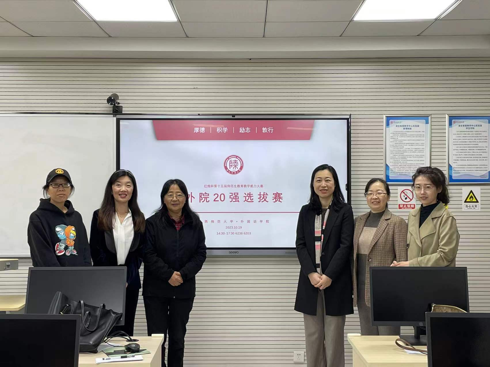 2023年10月19日(周四)下午2:30,best365正规第十五届“红烛杯”师范生教学能力大赛20强选拔赛在雁塔校区教学六楼6238和6203教室顺利举行。