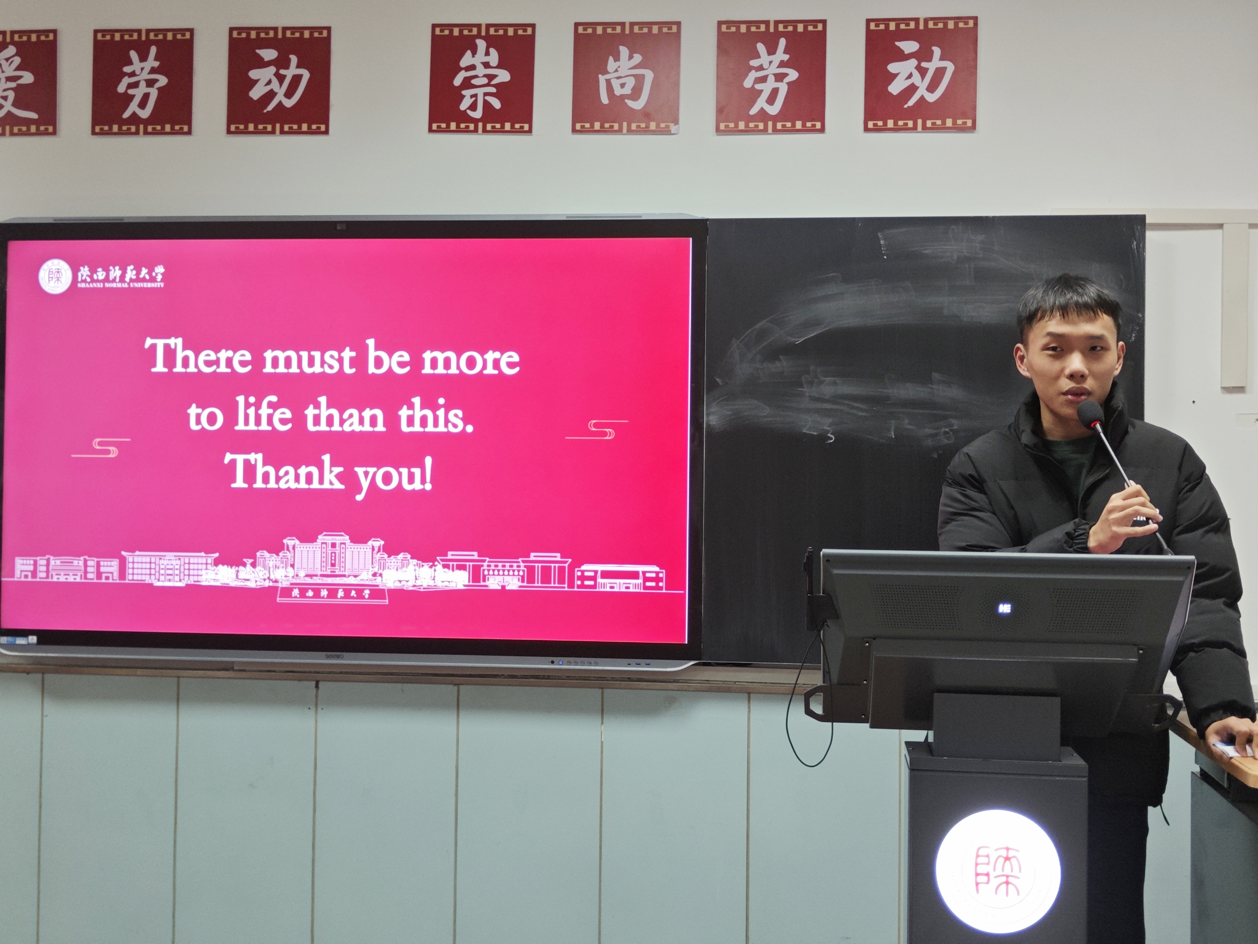 张楚城同学以《触类旁通,事半功倍》为题作教学技能竞赛经验分享。他通过分享自己参加演讲比赛、求职比赛、英语教学技能大赛的经历,强调竞赛过程中肢体语言、幻灯片制作、简历制作等细节的重要性,并且提出要及时总结竞赛经验,从而实现事半功倍的效果。