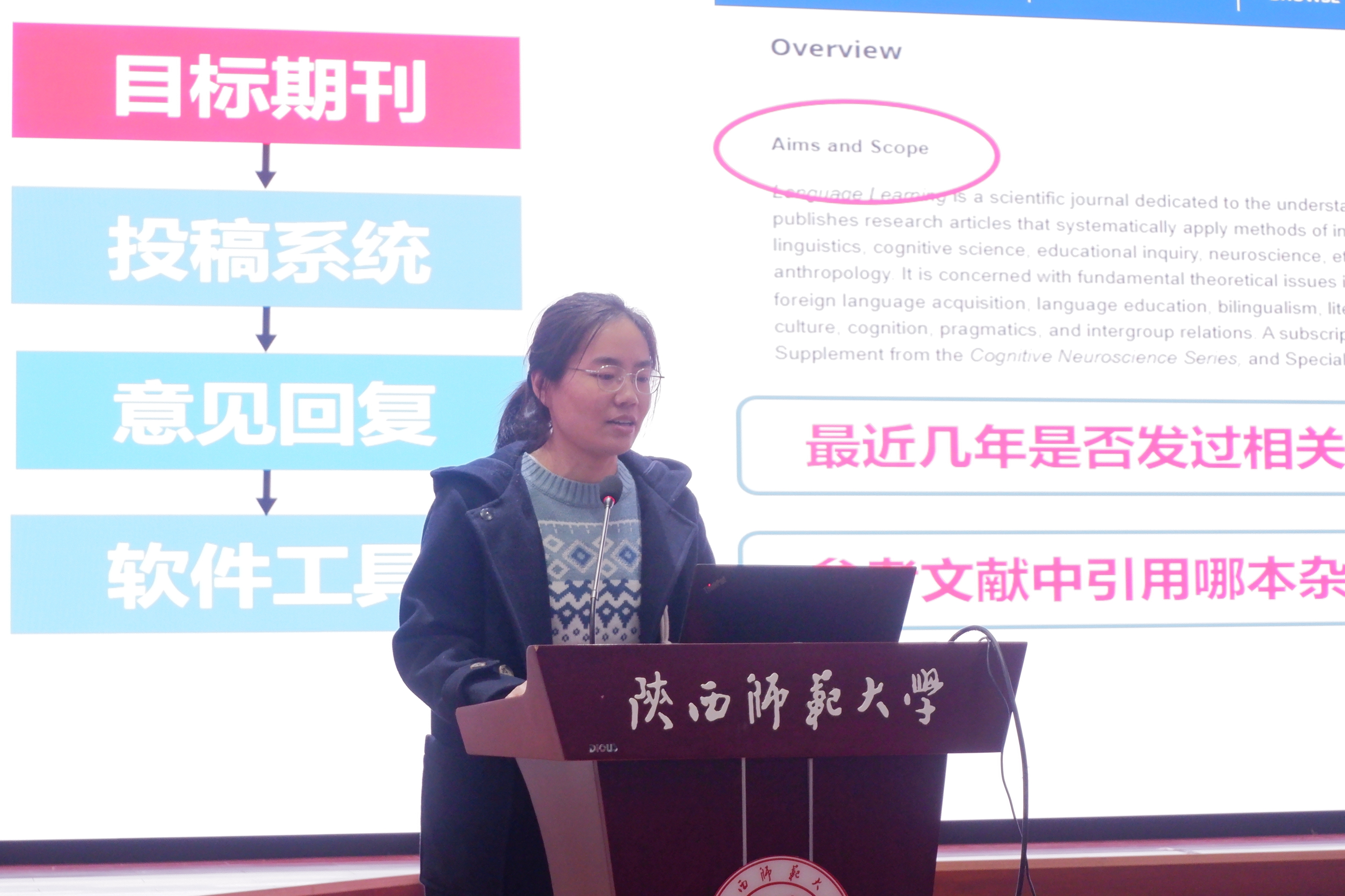 李艳教授,王艳滨副教授和申慧洋博士分别进行发言。李艳教授分享了她的科研秘诀——勤。她分别从勤能补拙和业精于勤两个方面进行分享,督促各位教师要多看书、多思考、多写作和多沟通;王艳滨副教授从科研理念、项目申报与论文发表和日常科研习惯等三个方面讲述了教研心得。申慧洋博士从目标期刊的选择、投稿材料的准备、意见信的回复和论文工具等四个方面分享了自己在论文写作与投稿中所积累的经验。