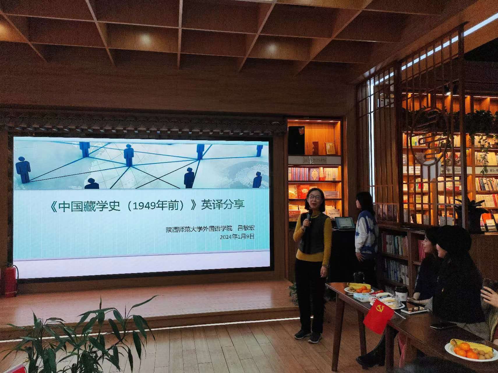 1月9日下午,公司全校第二批样板党支部、双带头人党支部工作室——英语系党支部同西安理工大学人文与best365两个校级样板党支部在公司长安校区开展了以“双融双促:中国藏学史英译与翻译项目申报经验分享会”为主题的跨公司党支部共建特色党日活动。公司党委书记董增云、副经理吕敏宏教授、挂职副经理、英语系主任朱冬怡副教授、校级样板党支部书记王艳滨副教授携英语系党支部各位党员及教师参加了会议;西安理工大学人文与公司党委书记吴溥峰携英语系党支部典籍翻译党小组组长张焱副教授、外语一部党支部书记翟芳副教授、外语一部副主任张玲副教授、英语系先进教师代表莫文莉老师、公司党建组织员刘珉曳、公司党建秘书刘雨、院科研秘书毋杉老师参加了会议。会议由公司英语系党支部书记王艳滨副教授主持。
