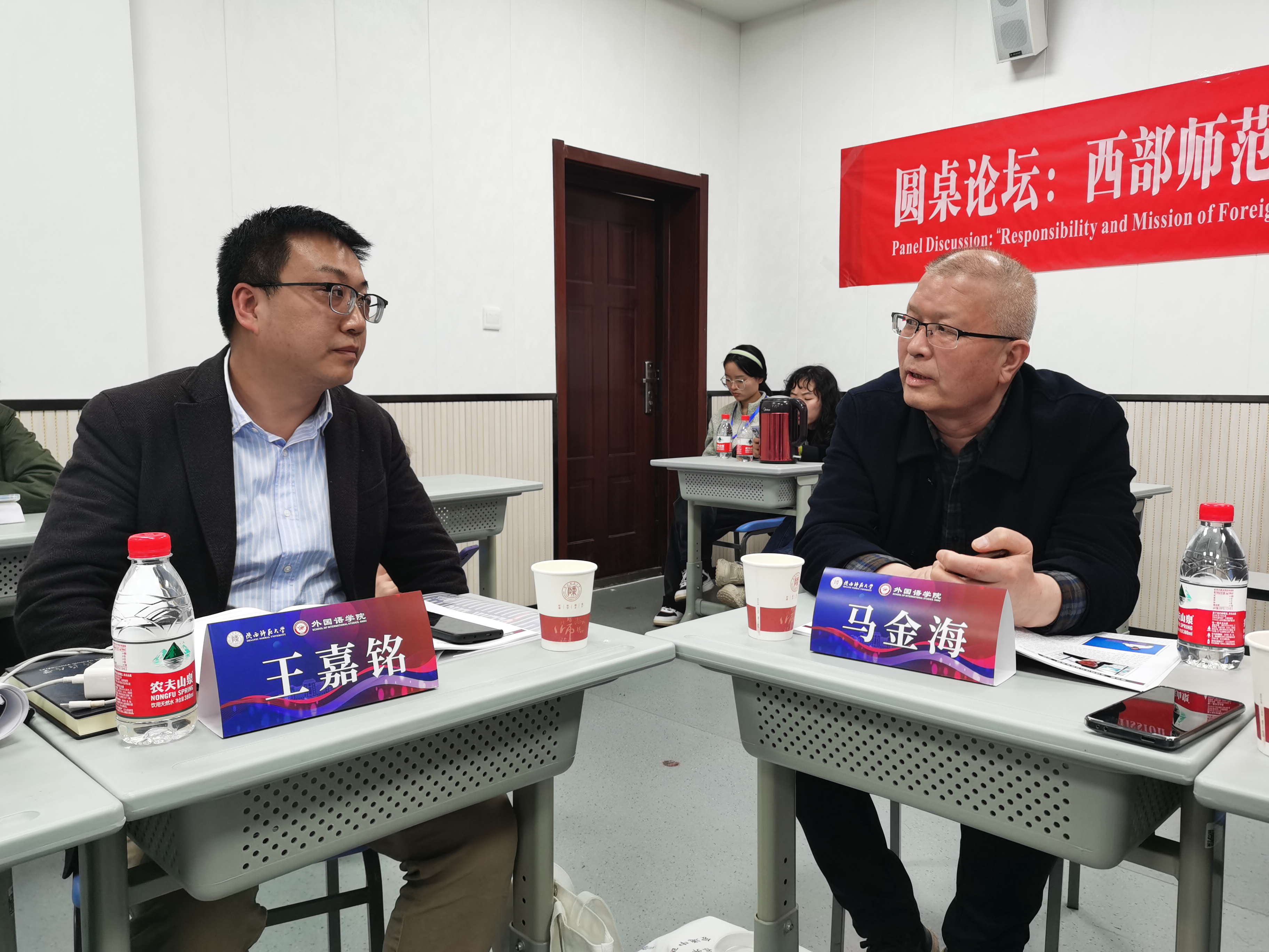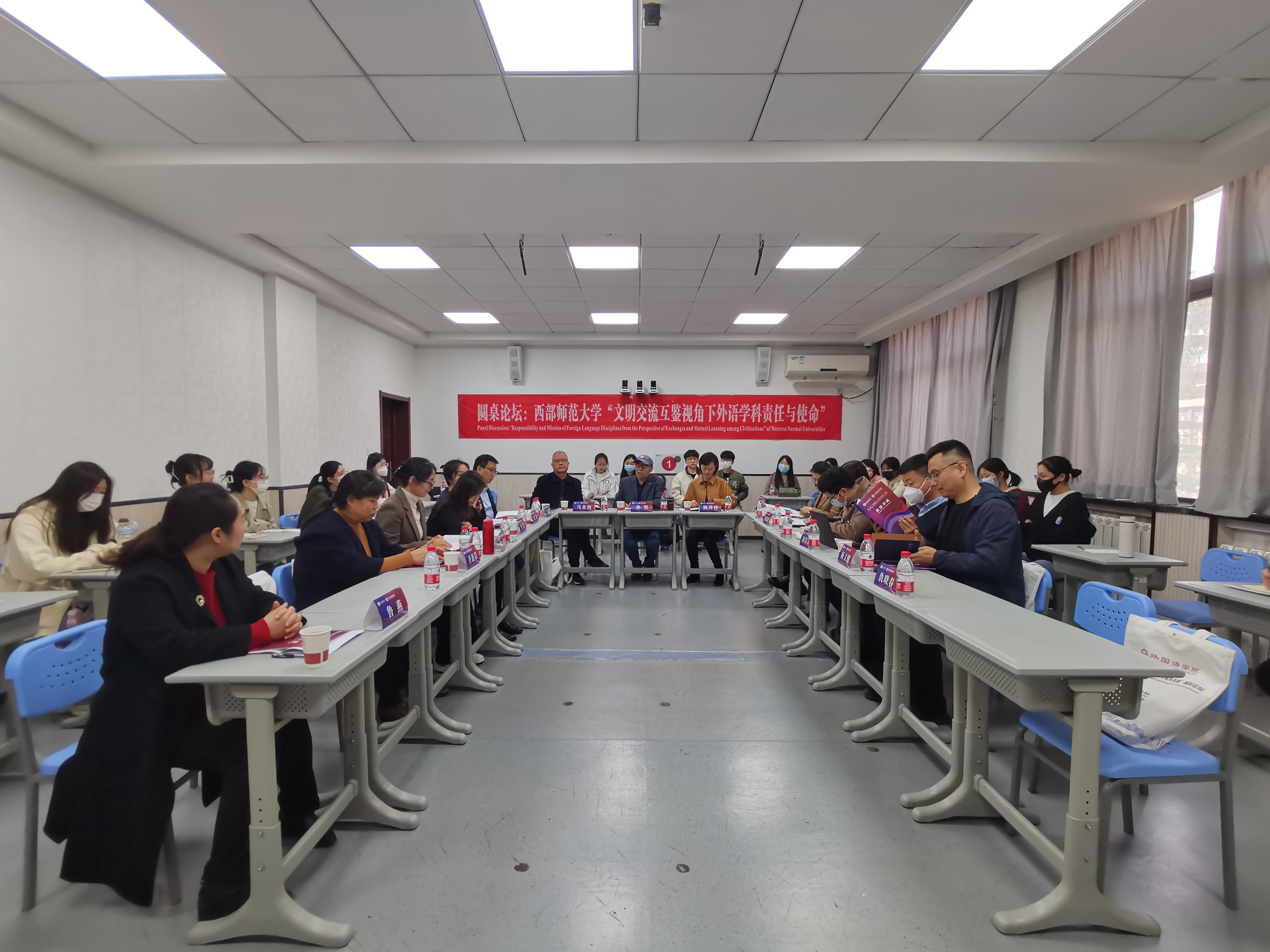 当日下午,西部师范大学“文明交流互鉴视角下外语学科责任与使命”圆桌论坛在公司副经理孙坚教授以及公司教师陈萍萍博士的主持下开展。来自西南大学、重庆师范大学、新疆师范大学、天水师范公司、西安外国语大学、西北大学、西安邮电大学、西安石油大学、安康公司、咸阳师范公司、宝鸡文理公司、渭南师范公司、西安文理公司、陕西理工大学的20多位外语学科专家学者就“外语类专业国际化人才培养模式与路径”“立德树人背景下师范类院校外语专业课程思政探索”“师范类院校外语专业公司产品改革与实践”“‘一带一路’背景下的语言服务”等话题作了交流分享,现场互动热烈。公司党委副书记鲁燕在圆桌论坛中还对公司员工思想政治工作和公司产品情况做了介绍,并对优秀毕业研究生进行了宣传和推介。