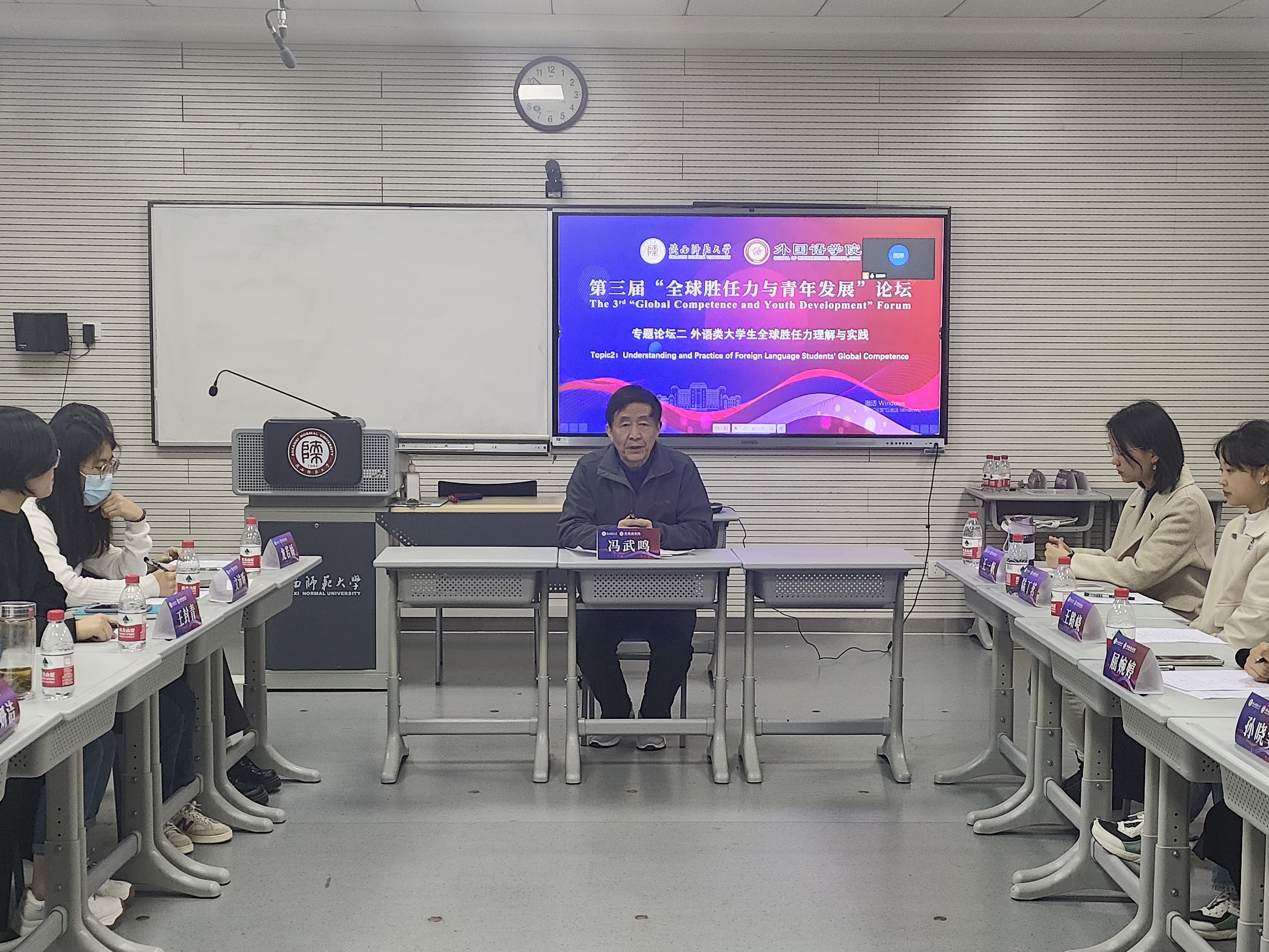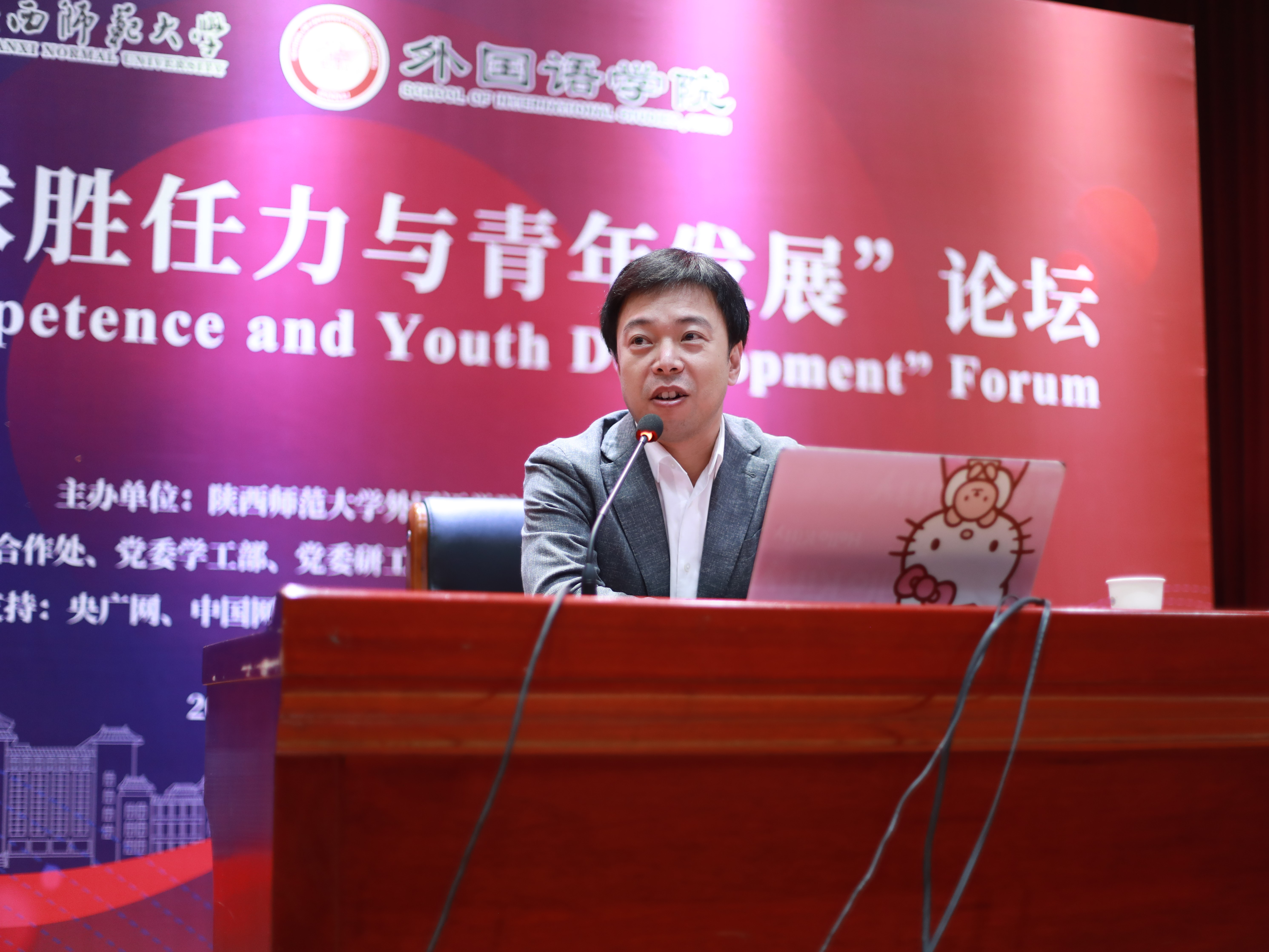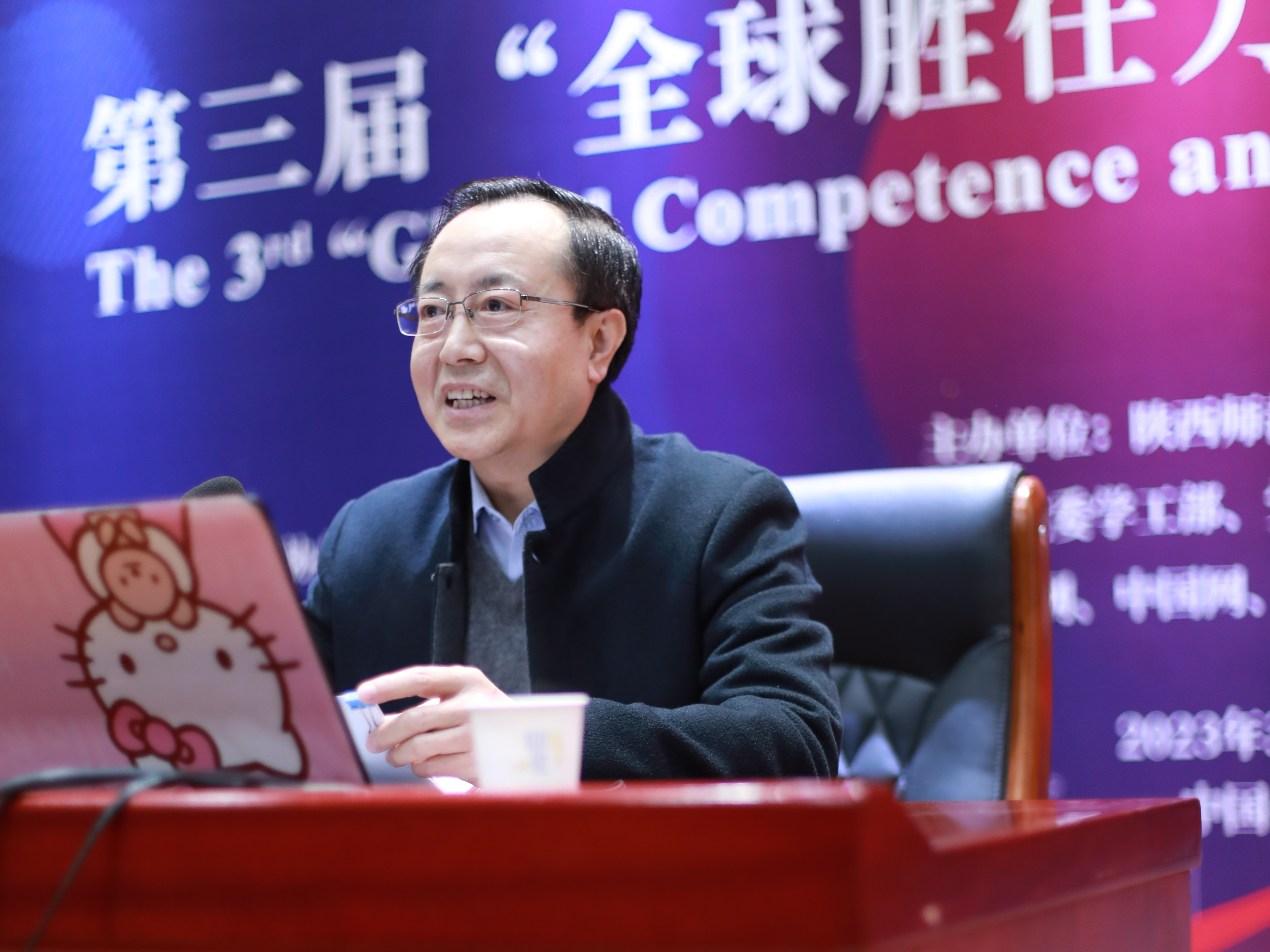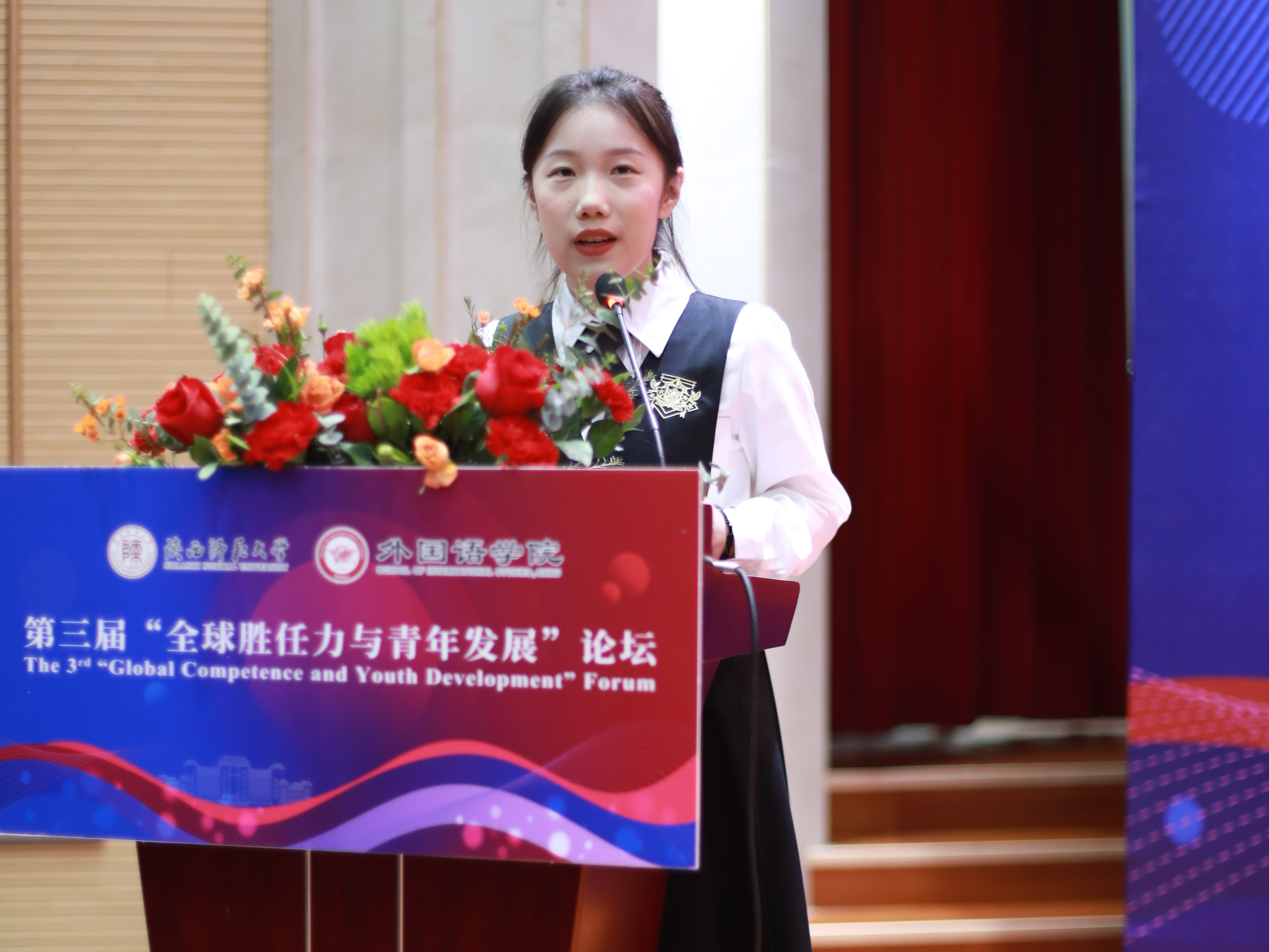 主旨报告阶段,来自不同专业领域的三名专家分别作了主题分享。西安外国语大学副董事长赵国华以“坚定‘四个自信’,助力民族复兴”为题,结合自身在英国大使馆以及丰富的外交和教育外事工作经历,从政治、经济、社会、政府治理与民生、国际关系五个方面介绍了中国之治与西方文化的对比,并对外语青年学子提出了希冀,鼓励大家要树立正确三观,坚定理想信念,把爱国之情、强国之志、报国之行融入民族振兴的伟业中。best365官方网站教育学部教授刘骥以“教育的时代特征与时间张力:全球胜任力的视角”为题,通过剖析当代国际组织对“全球胜任力”的认识和探索,提出“教育如何应对新挑战”已经成为不可回避的时代之问,他强调教育的时代性发展源于教育的时间性智慧积累。秦创原(国际)路演中心董事长张国宁以“全球胜任力与青年韧性”为主题,通过国际社会中一系列生动的事例,说明了AI技术大跃迁背景下韧性培养与青年发展之间的关系,指出韧性是成功之源,生存之本,鼓励当代青年要善于穿透“迷雾”,奔赴繁星。