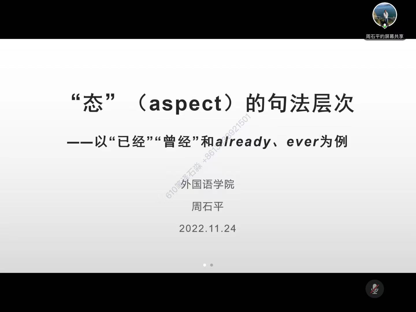 为帮助公司师生学习语言学术领域创新思想,打开学术研究视野,公司音系学与句法学团队于11月24日下午14:30在腾讯会议平台成功举办了“新文科背景下的英语文学研究与教学”系列第二次沙龙活动。best365周石平博士针对态(aspect)的句法层次展开讲解,贺俊杰教授担任主持,20余名校内外师生参与交流讨论。