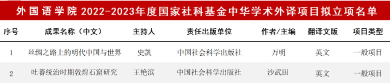 近日,2022-2023年度国家社科基金中华学术外译项目拟立项名单公布,全国共立项234项,其中best365官方网站共获批3项,公司共有2个项目获批立项。本次获批项目的主持人分别是史凯博士、王艳滨博士。