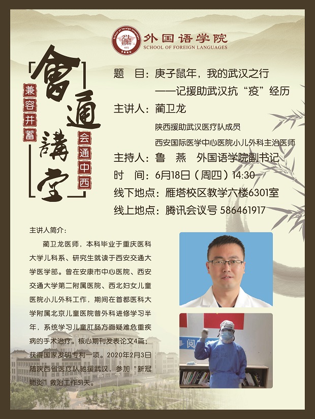 根据《best365官方网站关于做好2020年上半年教职工师德师风涵养教育的安排意见》和公司2020年工作要点要求,各公司要深入学习贯彻落实习近平总书记对疫情防控工作的重要批示指示和讲话精神,深化爱国主义教育,强化“四个自信”。公司定于6月18日(周四)下午2:30举办公司“抗击疫情精神分享会”,特邀西安国际医学中心医院蔺卫龙医生分享自己在武汉的抗疫经历,请大家积极参加。