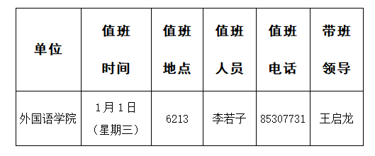 2020年元旦值班安排表