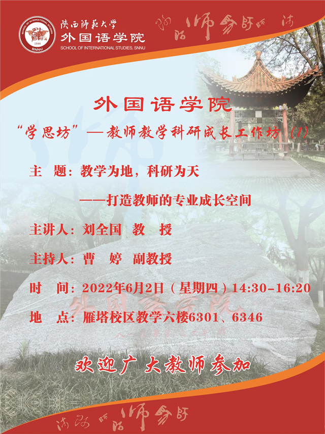 "学思坊"--教师教学科研成长工作坊(1) 预告